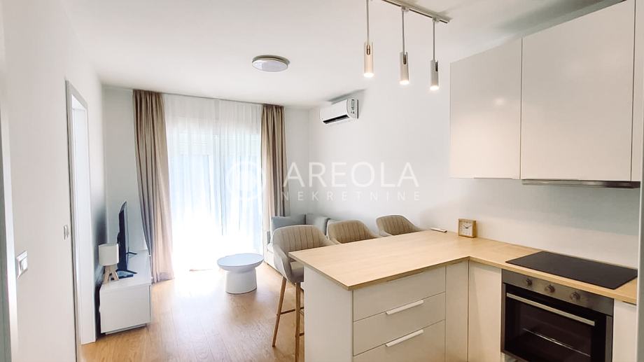 Stan je potpuno novoopremljen i namješten, te se iznajmljuje po prvi put. Na raspolaganju je i parkirno mjesto u garaži.
