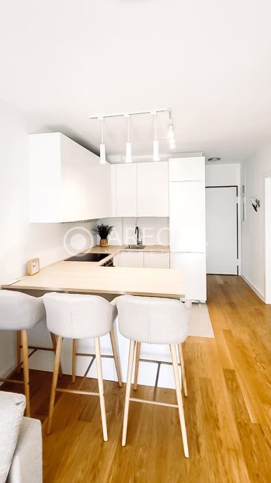 Iznajmljuje se moderan, potpuno namješten stan površine 48 m² na drugom katu stambene zgrade u Splitu, predio Visoka.