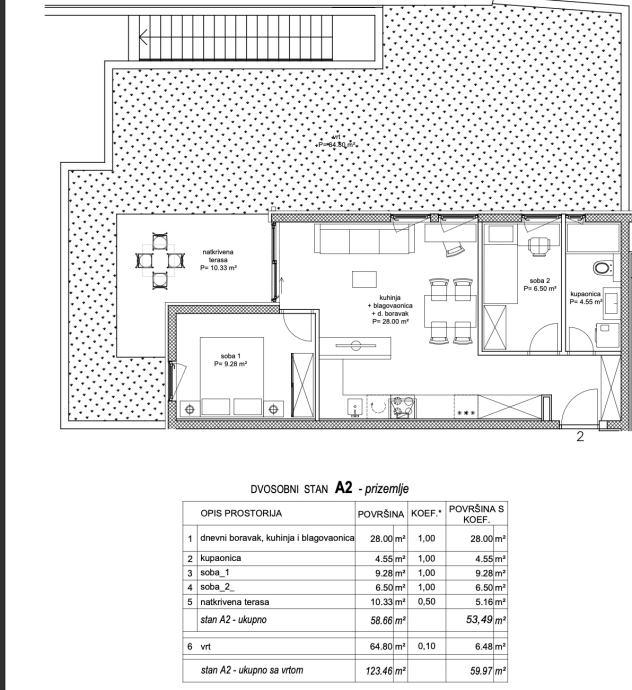 Ovaj izniman dvosoban stan, smješten u srcu Visoke u Splitu, predstavlja savršen spoj modernog dizajna i vrhunske lokacije. Smješten u prizemlju nove zgrade izgrađene 2025. godine, ovaj stan površine 59.97 m2 nudi udoban i luksuzan životni prostor. Uživajte u prostranom rasporedu koji...