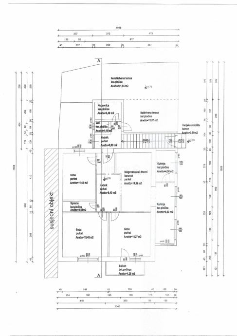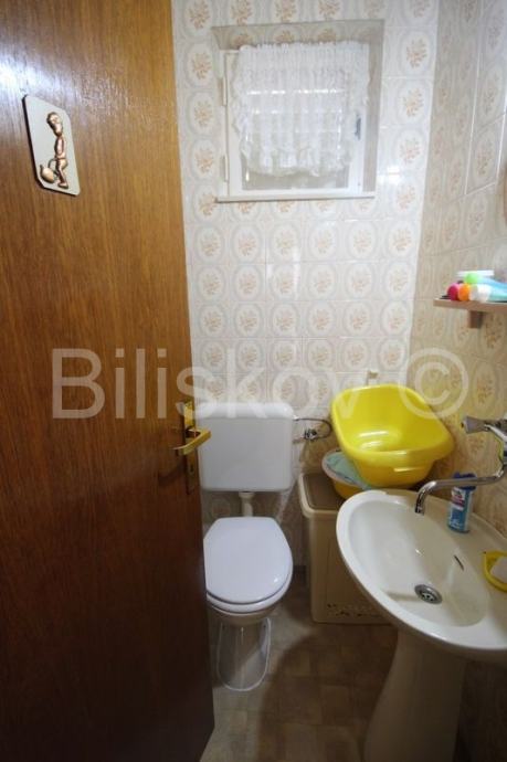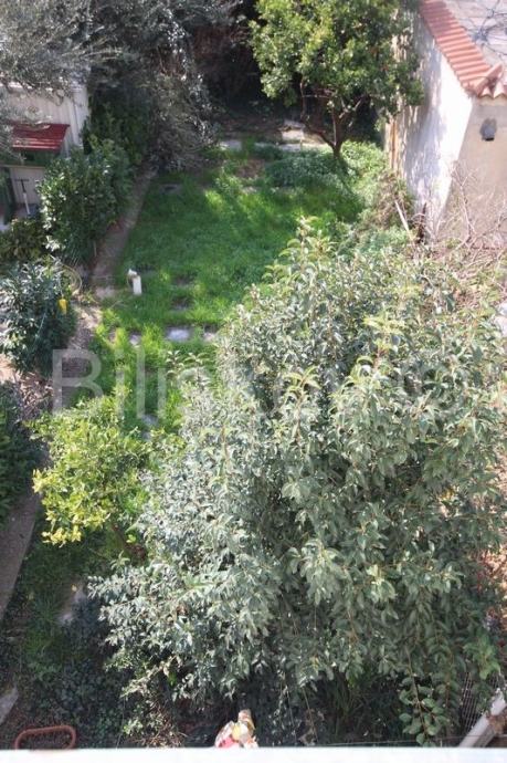 Split, Visoka, trosoban stan na 1.katu privatne kuće površine 96 m2 s terasom od 46 m2, balkon 4,25 m2, vrt od 70 m2 koji može dijelom poslužiti i kao parking (direktan ulaz sa ceste), garsonjerom od 16 m2 povezana sa spremom od 8,6 m2.