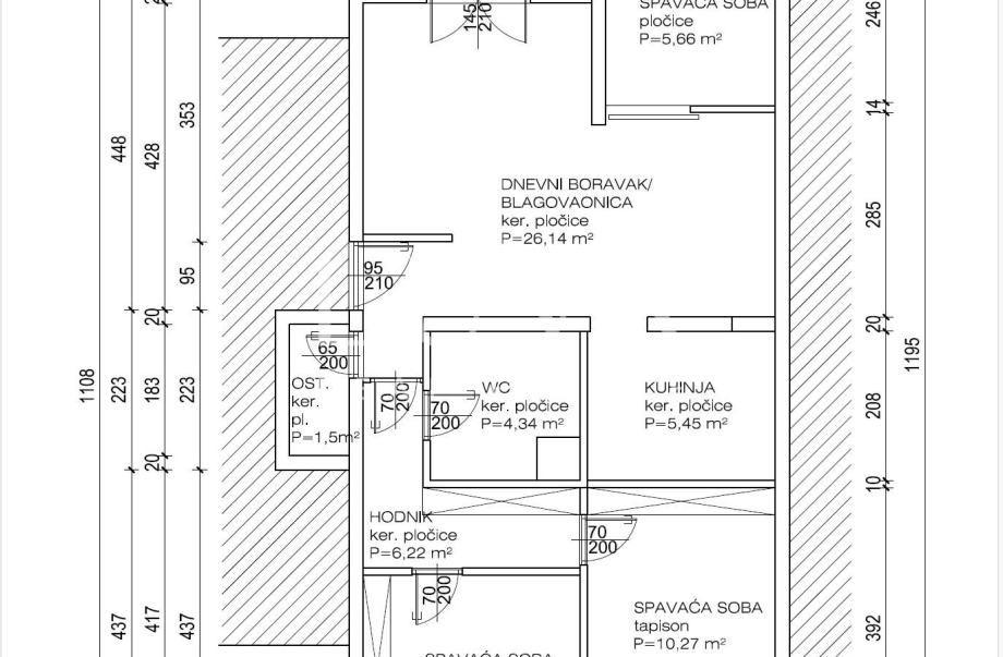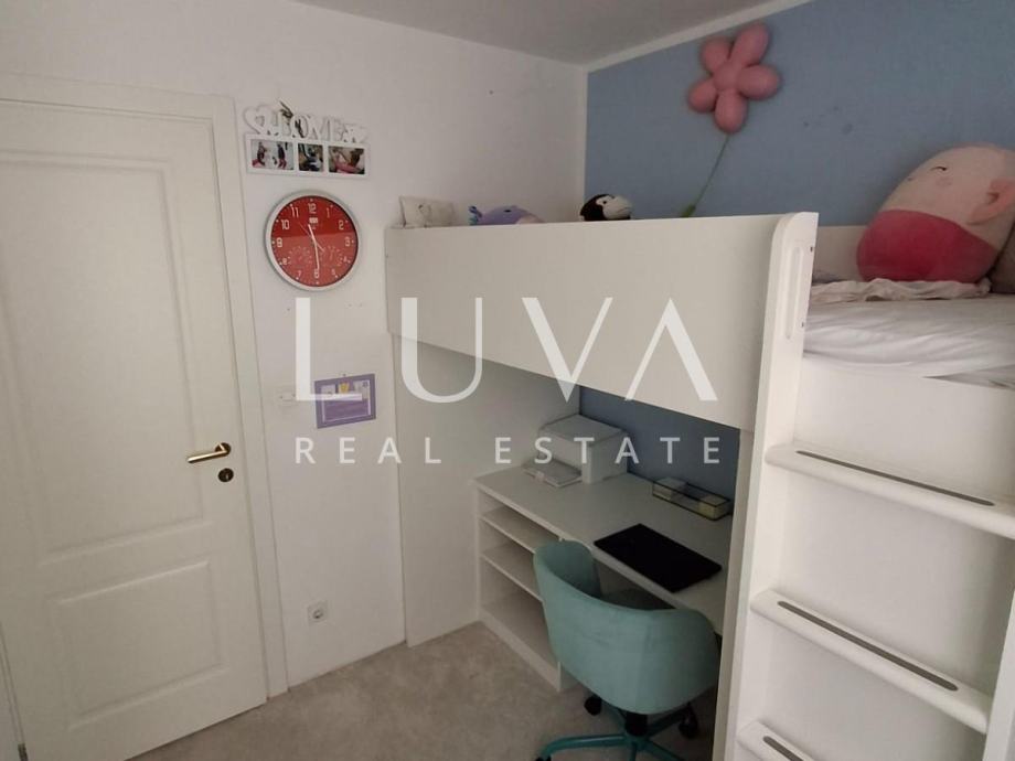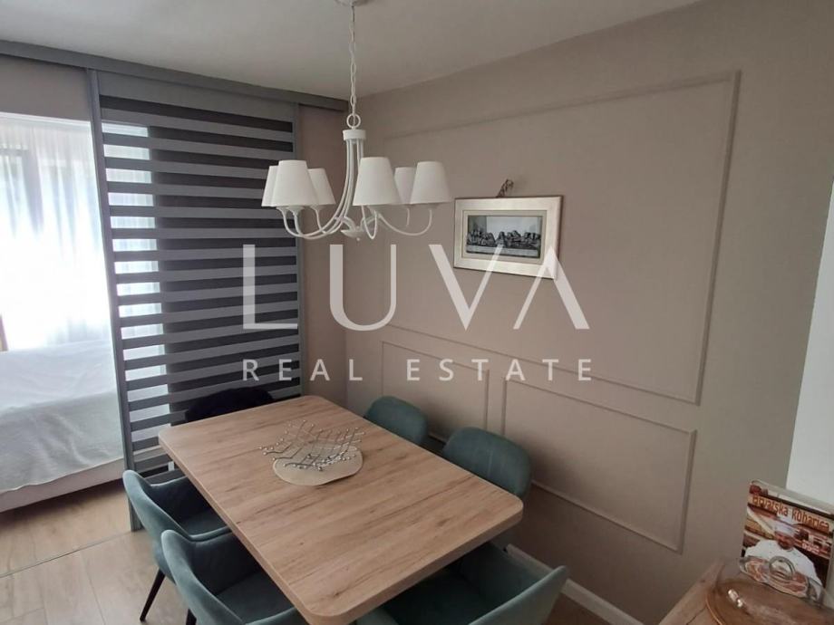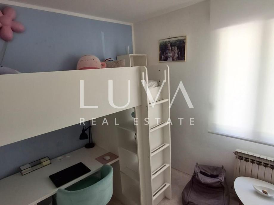Stan se sastoji od tri spavaće sobe, dnevnog boravka koji se skladno nastavlja na kuhinju, čime je stvoren funkcionalan dnevni prostor za obitelj ili više osoba. Tlocrt je promišljen, bez suvišnog gubitka prostora, što omogućuje udoban i praktičan svakodnevni život. Stan je u potpunosti renoviran prije godinu dana, pri čemu su korišteni kvalitetni materijali i oprema, što ga čini spremnim za useljenje bez dodatnih ulaganja.