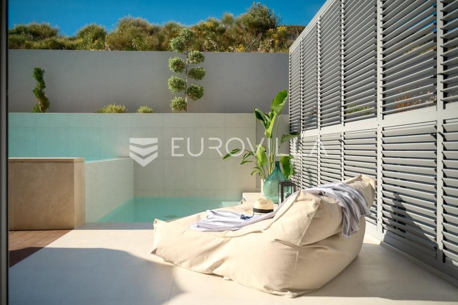 Split, Žnjan, dugoročno se iznajmljuje dizajnerski uređen, komforan jednosobni stan sa vlastitim bazenom i terasom, kratkoročan najam.Stan površine 40m2 sastoji se kuhinje i dnevnog boravka, spavaće sobe i kupaonice. Open space dnevni boravak i spavaća soba imaju izlaz na terasu istočne orijentacije, dok se bazen smjestio na sjevernoj strani zgrade, daleko od svih pogleda, te osigurava kompletnu privatnost.Sam bazen je kompletno automatiziran i posjeduje robot-čistača, tako da je održavanje bazena svedeno na minimum.Stan je uređen od strane renomiranog arhitektonskog studija, te su prilikom opremanja korišteni najkvalitetniji materijali i uređaji.Svi prozori i stijenke posjeduju komarice, a istočni dio stana skriven je od ostalih zgrada aluminijskim žaluzinama, koje se po potrebi rastvaraju.Stanu pripada jedno nenatkriveno parkirno mjesto, koje posjeduje punjač za električna vozila.Za sve ostale informacije i upite, stojimo Vam na raspolaganju....Za ovu nekretninu kontaktirajte agenticu na broj telefona +385 91 620 1672.Više na Eurovilla.hr, ID: 364741Direktan link: https://eurovilla.hr/nekretnina/split-znjan-ekskluzivan-jednosoban-stan-do-1-5-2026/364741/-----... For this property contact our agent on telephone number +385 91 620 1672.More on Eurovilla.hr, ID: 364741Direct link: https://eurovilla.hr/en/property/split-znjan-exclusive-one-bedroom-pool-and-terrace-untill-may-1st-2026/364741/...