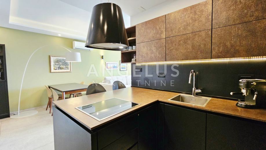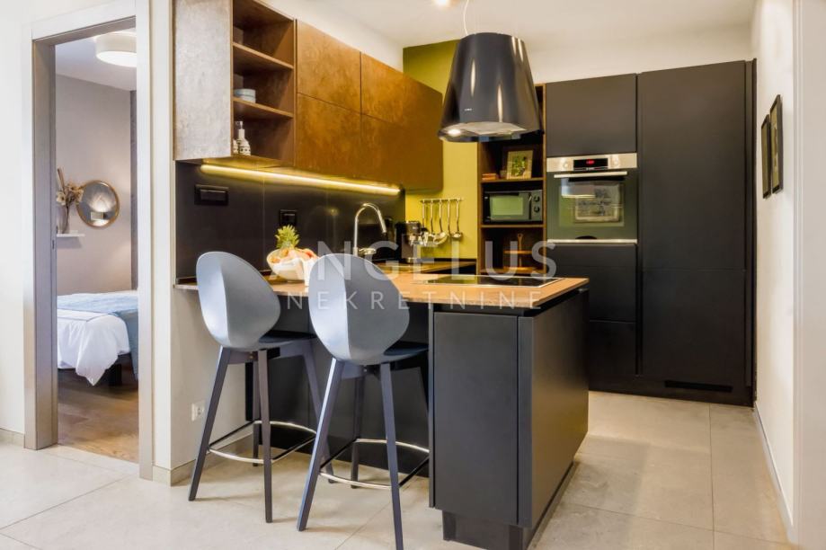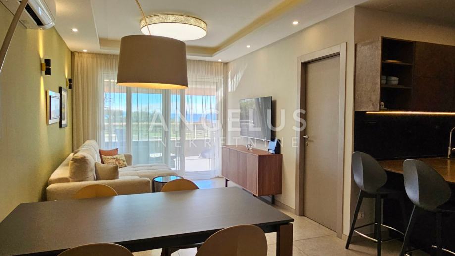 Prodaje se luksuzan i funkcionalan dvosoban stan smješten u manjoj, moderno projektiranoj zgradi, s impresivnim otvorenim pogledom na more.