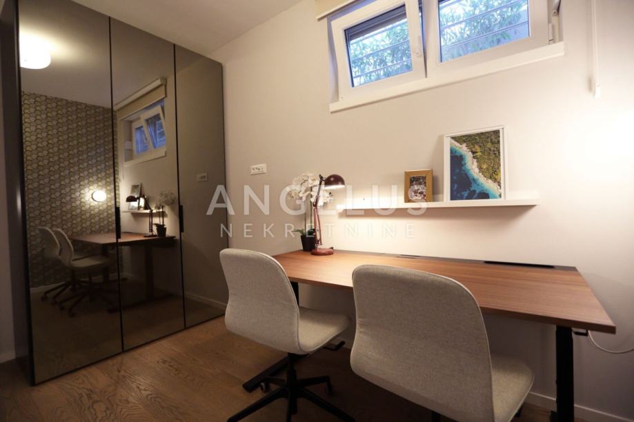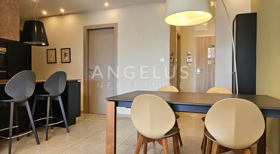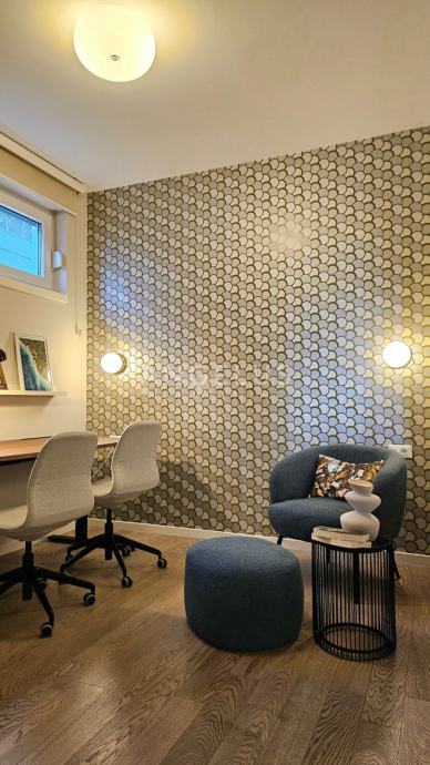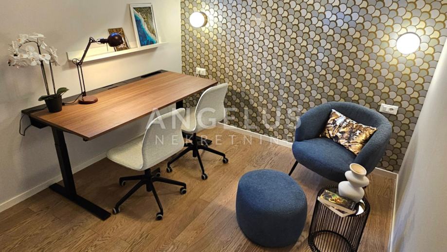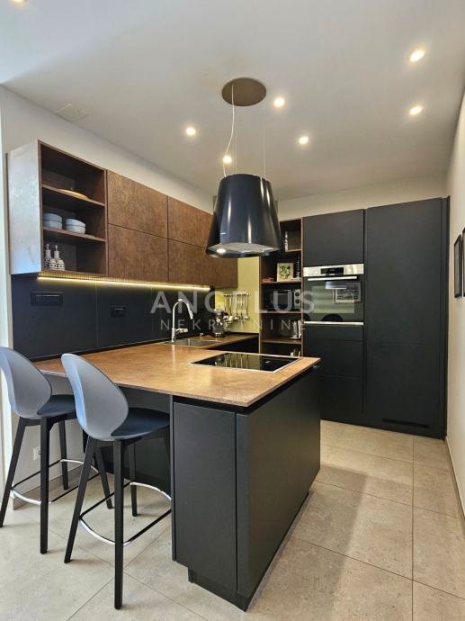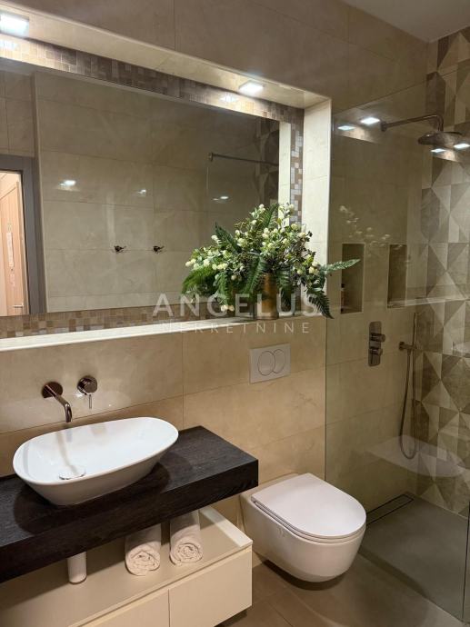 Nekretnina se prodaje u potpunosti opremljena vrhunskim namještajem i kvalitetnim kućanskim aparatima. Stan je u cijelosti klimatiziran, dok kupaonica raspolaže podnim grijanjem, osiguravajući visoku razinu udobnosti tijekom cijele godine.