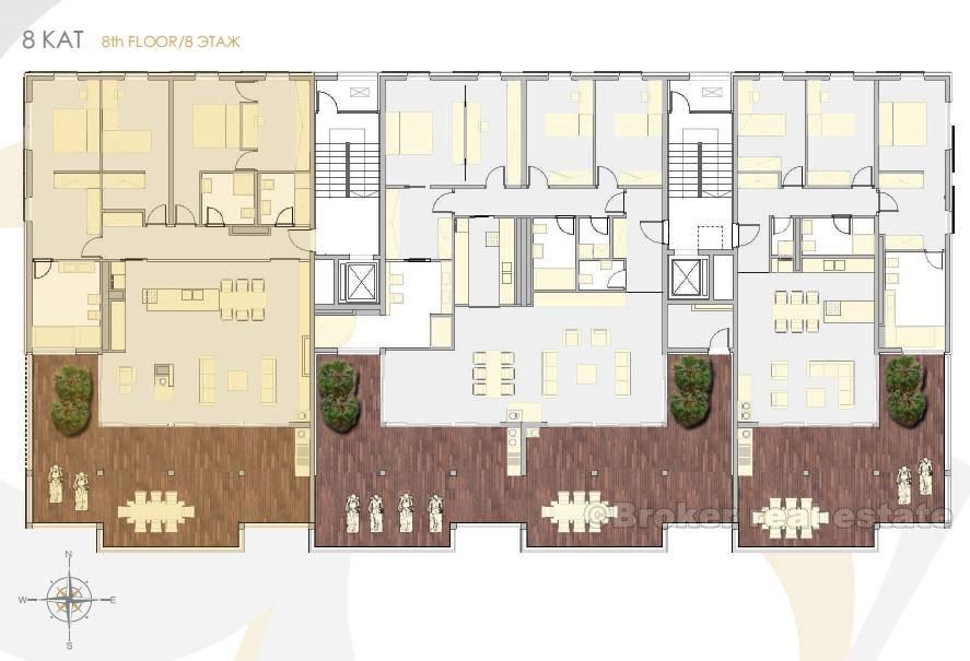 Projektirani na jedinstvenoj lokaciji na uzvisini 45 metara iznad mora i okruženi očuvanom šumom borova i čempresa, s jedinstvenim otvorenim pogledom na more koji će vam oduzeti dah. Vrhunski, međunarodni tim arhitekata znalačkom koncepcijom arhitektonskih i krajobraznih rješenja jamče uspjeh ovog projekta. Poseban karakter projekta uz zelene površine i uređene vrtove sa otvorenim bazenom, zahvaljuje i susjednom igralištu za tenis, inovativnom konceptu stanovanja visokog standarda, iznimno visokoj kvaliteti i zahtjevnoj arhitekturi. Kulturna atmosfera, mirna lokacija nedaleko od središta grada, raznovrsna ponuda usluga i zajamčena sigurnost zajedno s ekskluzivnim ambijentom, stvaraju savršeni životni i stambeni prostor.