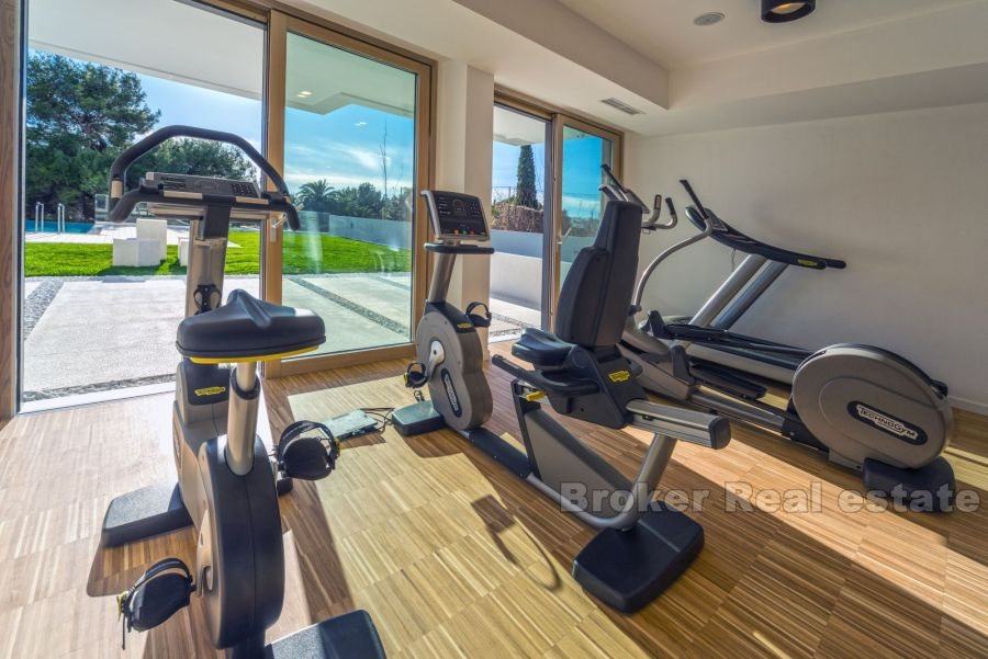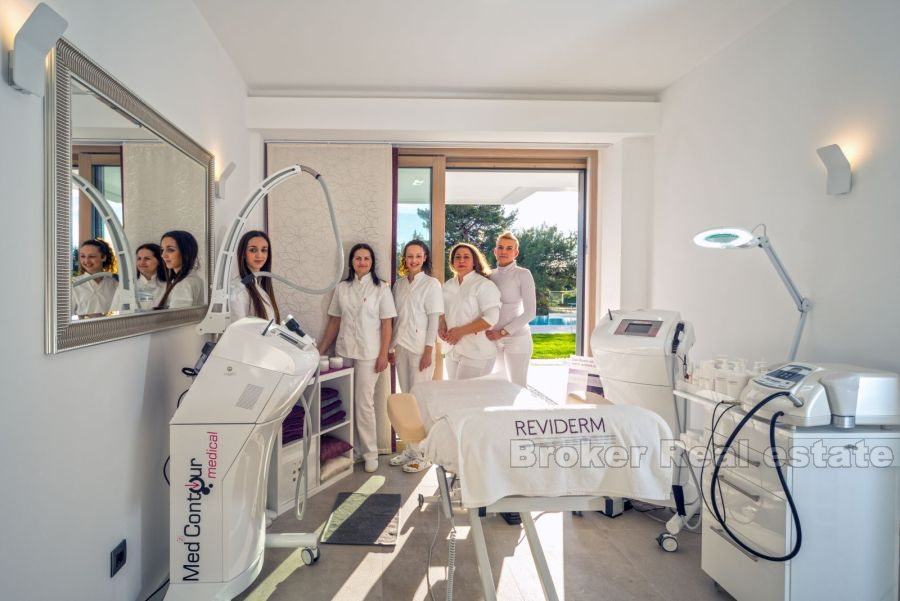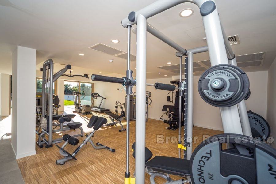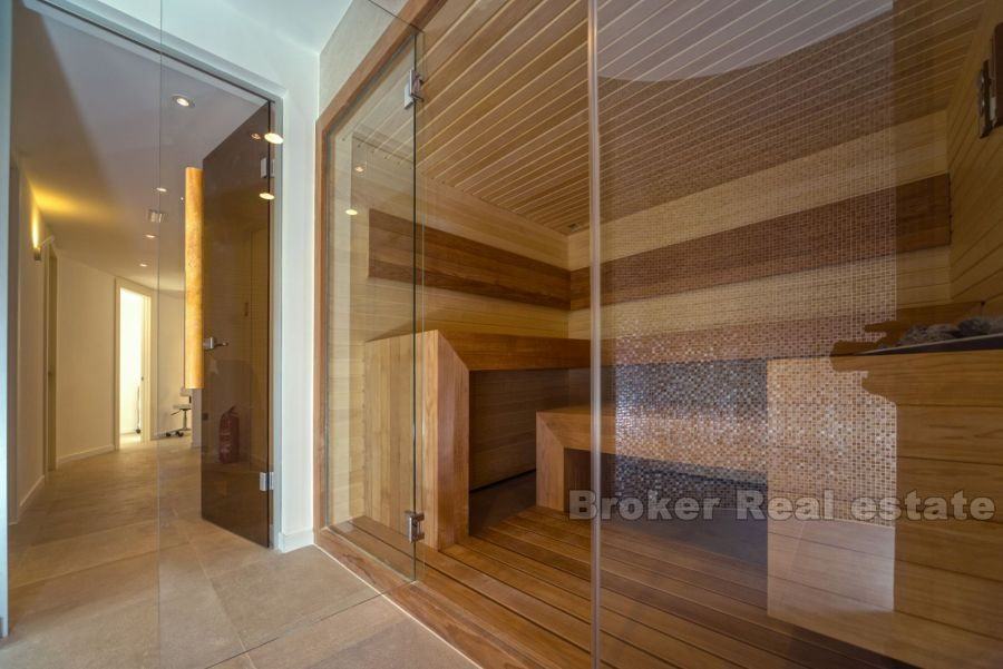 U prizemlju objekta, otvoreno prema vrtu na jugu i s pogledom na more, nalazi se Spa. Profesionalno dizajnirano Spa i fitness područje, dizajnirano od strane naših vrhunskih arhitekata specijaliziranih za unutarnje uređenje, posebno za vas i vaše opuštanje osmišljeni su razni sadržaji. Sauna, parna kupelj, teretana te posebne prostorije za individualne usluge i lounge prostor.
