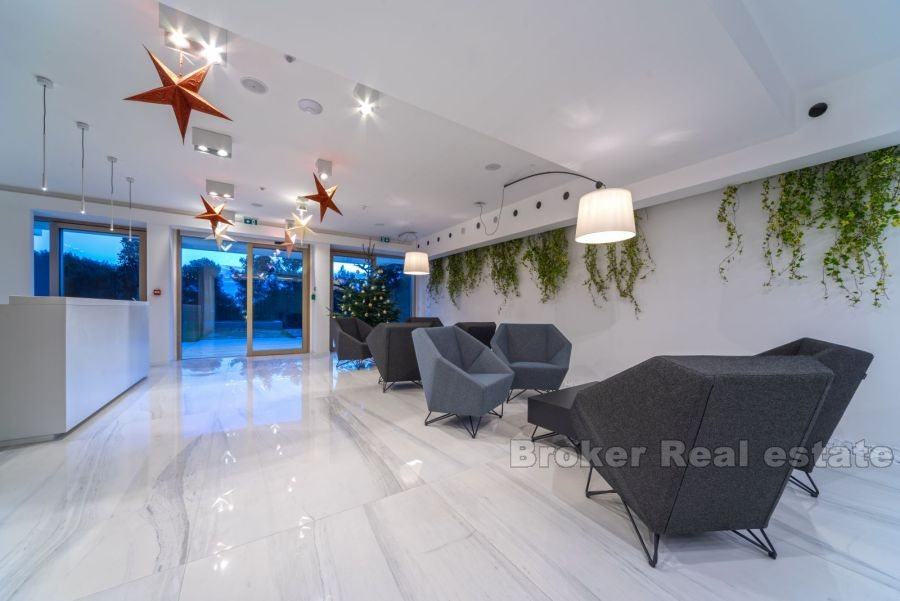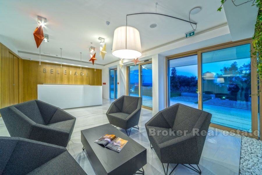Recepcioner se nalazi u lobiju u prizemlju objekta i za vas će rado preuzeti obavljanje raznih usluga, uz istovremeni nadzor vaše sigurnosti najmodernijom tehnologijom, poštujući vašu privatnost. Na vaš zahtjev obavit će razne svakodnevne obveze, od usluge pranja rublja preko održavanja zelenila, do skrbi o kućnim ljubimcima, organizacije prijevoza ili opskrbe hladnjaka prema vašim željama prije vašeg dolaska. Koncept "Concierge" vam po potrebi omogućuje više slobodnog vremena za vaše aktivnosti i opuštanje.