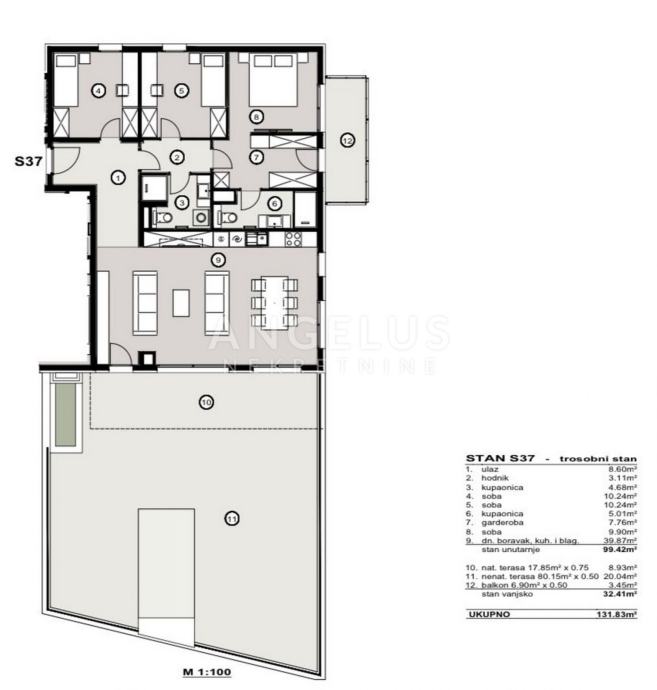 Angelus nekretnine Vam nude na prodaju trosoban stan od 131.83 m2 u NOVOGRADNJI u Splitu – predio Žnjan