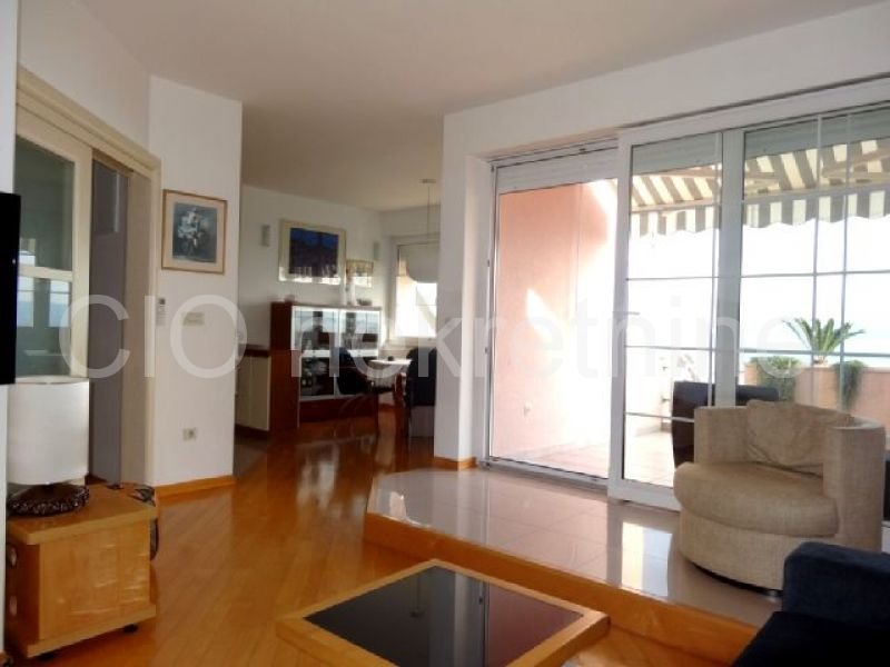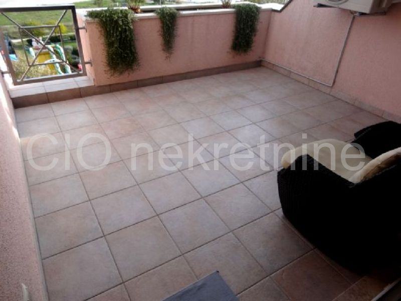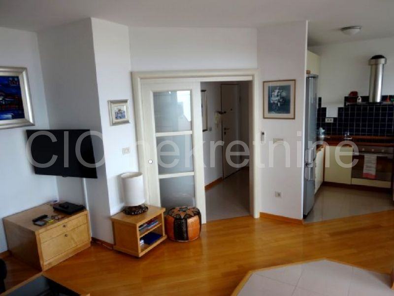 Dnevni boravak ispred sebe (na jugu) ima terasu (lođa +balkon). Stanu pripada kuhinjski namještaj s aparatima, ugrađeni ormari u sobama i hodniku.
