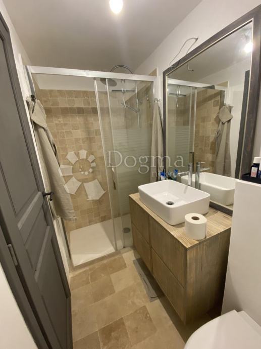 Ova autentična istarska ljepotica od 120 m2 pažljivo je restaurirana u skladu s tradicionalnim metodama, uz naglasak na uporabu ekoloških materijala poput vapna, pijeska i vode. Njena unutrašnjost odiše elegancijom, obogaćena pažljivo biranim elementima iz Toscane, uključujući tavelice, Travertino kamen i originalnu peć iz 19. stoljeća, koja dodatno naglašava talijanski duh ove nekretnine.