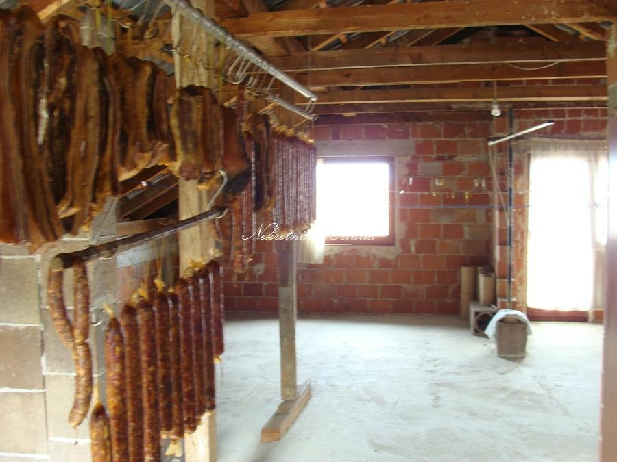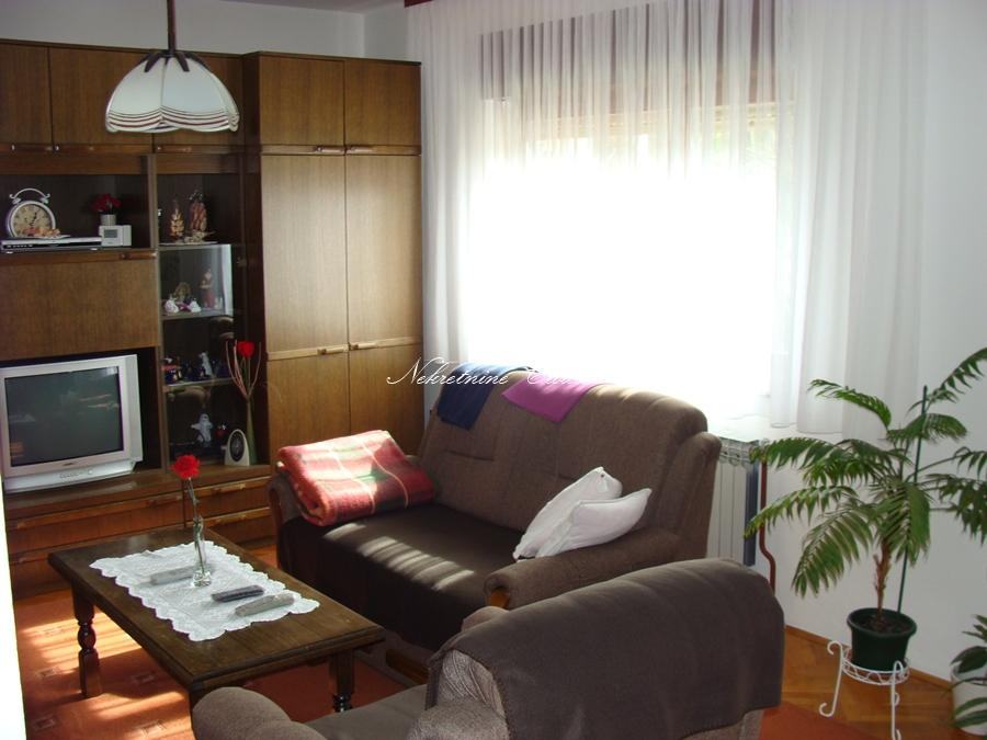Perlit vanjska fasada, drvena vanjska stolarija sa izo staklima, krovna obloga betonski crijep, parket u sobama.
