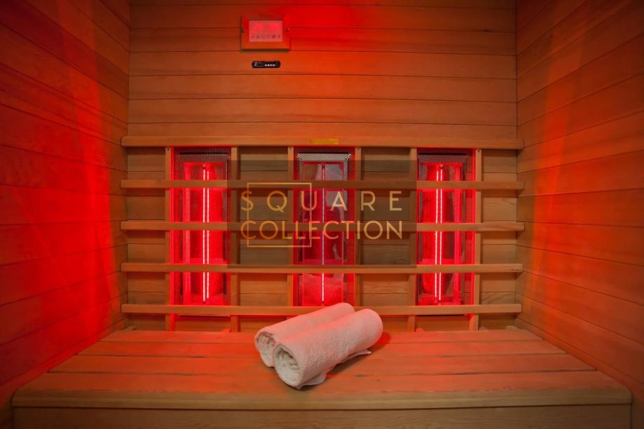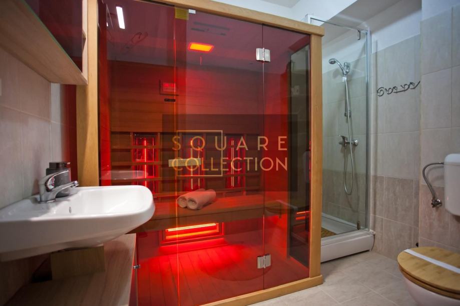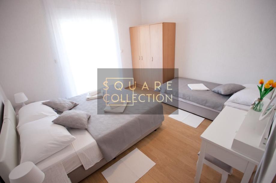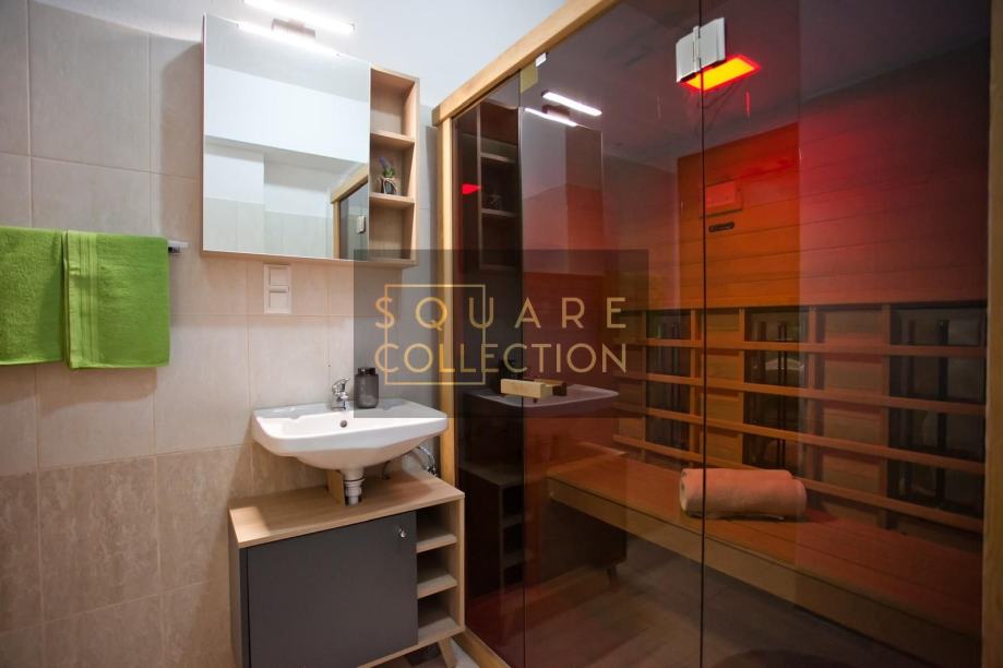 Stanu pripadaju tri spavaće sobe, dvije sa velikim krevetima (160x200) i treća soba sa dva odvojena kreveta. Stan sadrži 2 kupaonice sa tuš kadama i wc-om, od kojih se u jednoj nalazi sauna za dvije osobe, a u drugoj se nalazi perilica rublja.