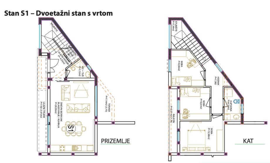Sračinec, moderan četverosoban stan, ukupno neto korisne površine 117,19 m2.Stan je raspoređen na dvije etaže, s jasno odvojenim dnevnim i spavaćim dijelom. Prizemlje obuhvaća ulazni trijem, hodnik, spremište, WC s tušem, te prostrani dnevni boravak otvorenog koncepta s kuhinjom i...Za ovu nekretninu kontaktirajte agenticu na broj telefona +385 95 361 3444.Više na Eurovilla.hr, ID: 115309Direktan link: https://eurovilla.hr/nekretnina/sracinec-cetverosoban-stan-povrsine-117-19-m2-novogradnja/115309/-----This beautifully designed apartment is spread across two floors, with a clear separation between the living and sleeping areas. The ground floor features an entrance porch, hallway, storage room, bathroom with shower, and a spacious open-plan living room with kitchen and dining area which opens... For this property contact our agent on telephone number +385 95 361 3444.More on Eurovilla.hr, ID: 115309Direct link: https://eurovilla.hr/en/property/three-bedrooms-apartment-sracinec/115309/...