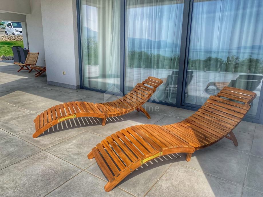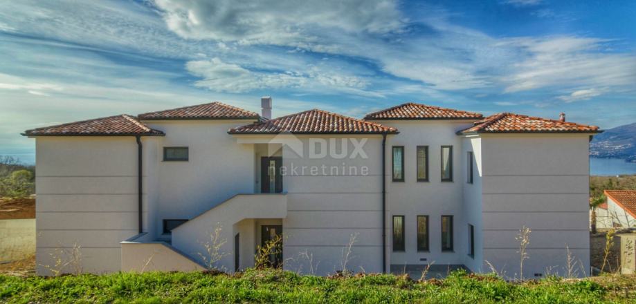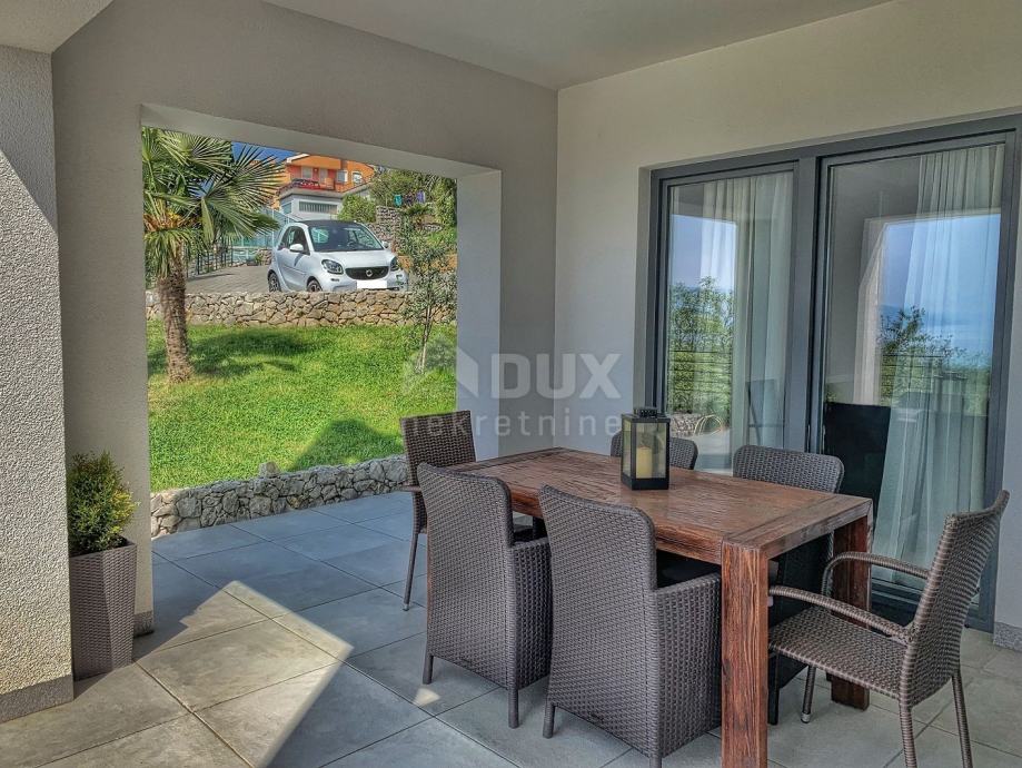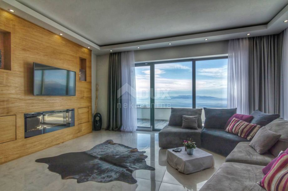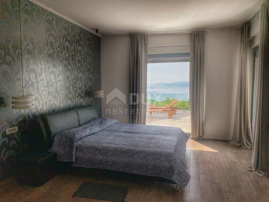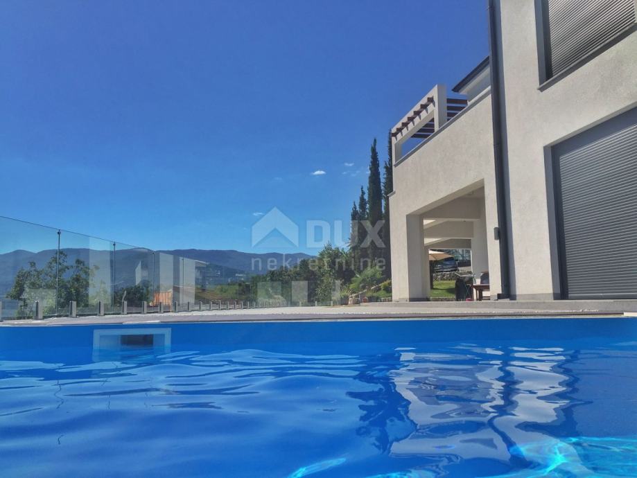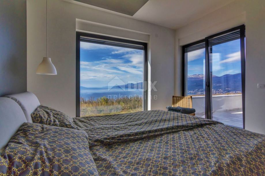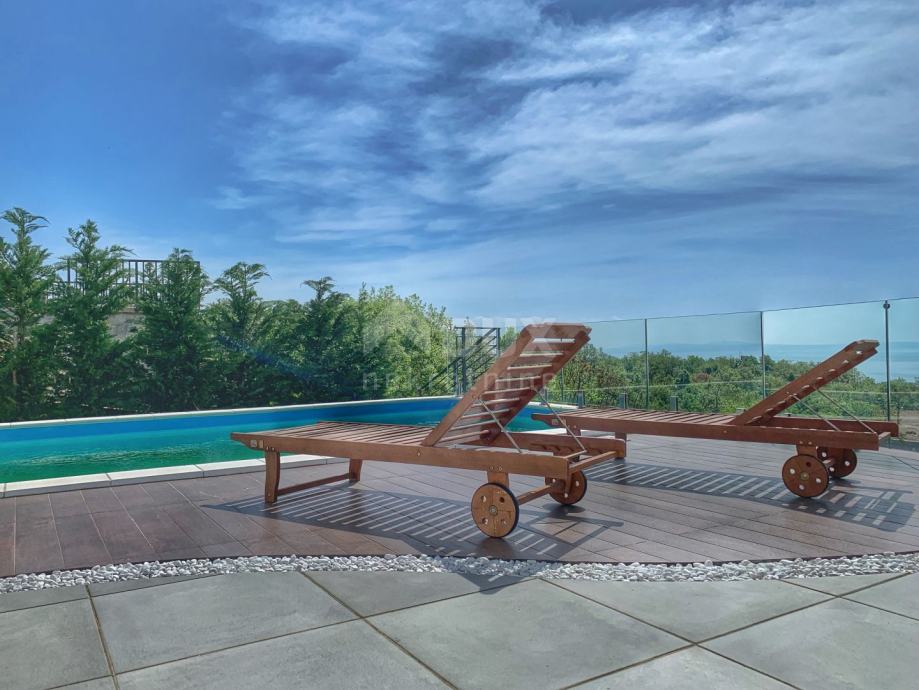 Villa / kuća je južno orijentirana s velikim staklenim stijenama na svim prostorijama na južnoj strani, tako da se iz tih prostorija pruža panoramski pogled na cijeli Kvarnerski zaljev.