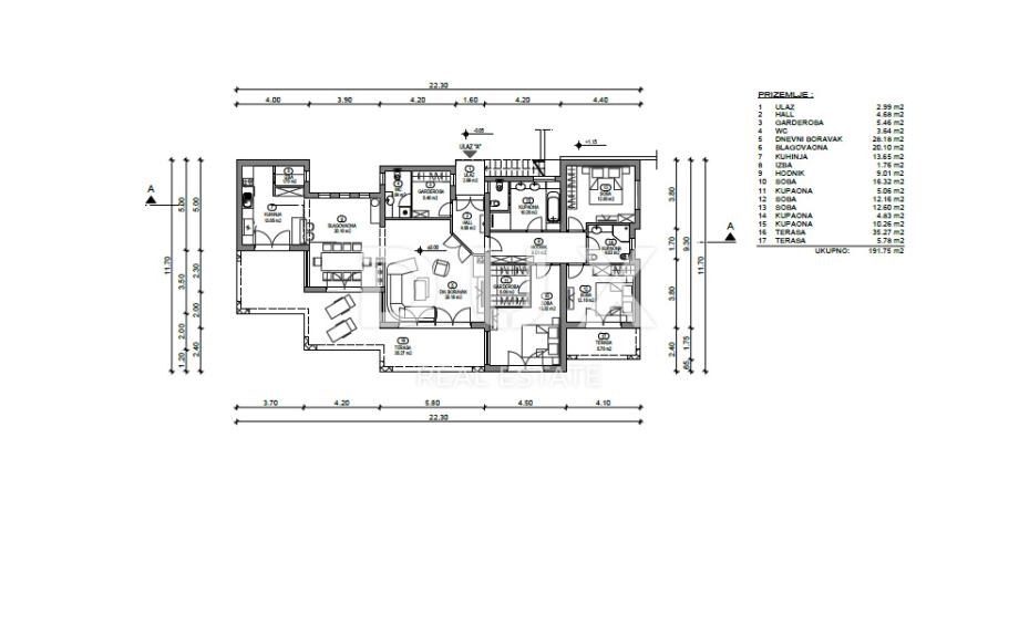 Kuća / villa se sastoji se od dva odvojena stana, svaki površine od cca 195 m2.