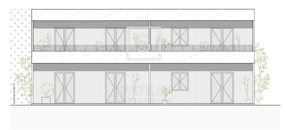 Zgrada se sastoji od 8 stanova te su svi koncipirani kao dvosobni stanovi s dnevnim boravkom i terasom.