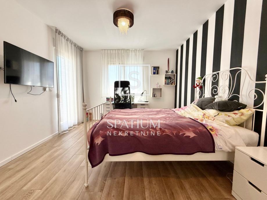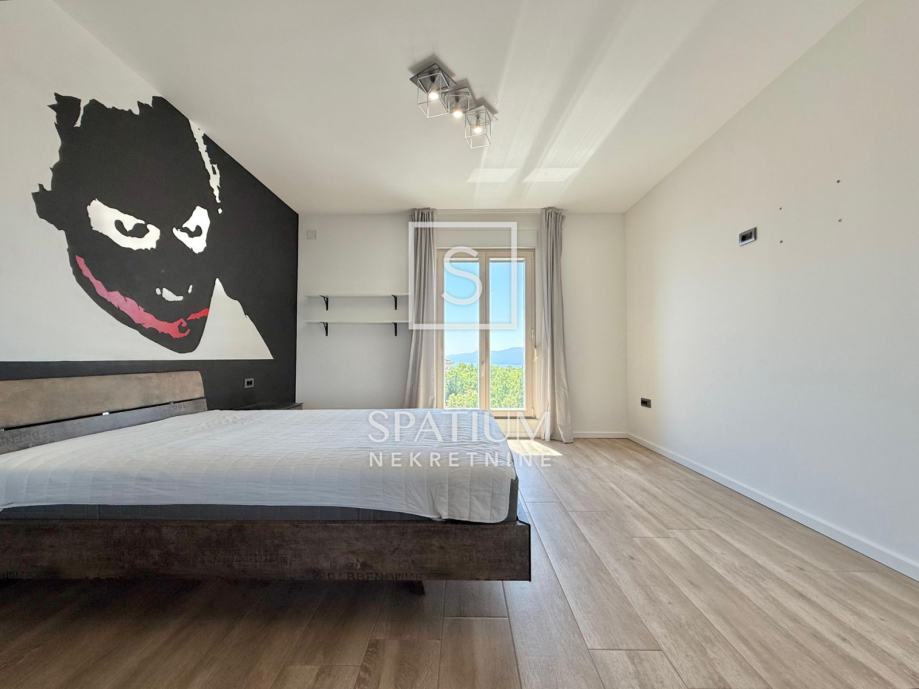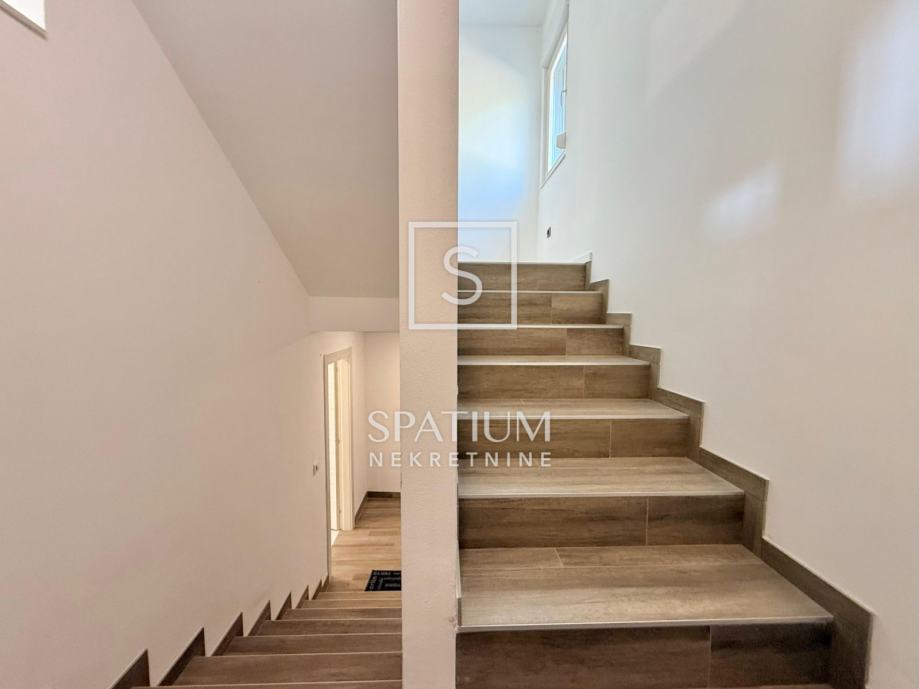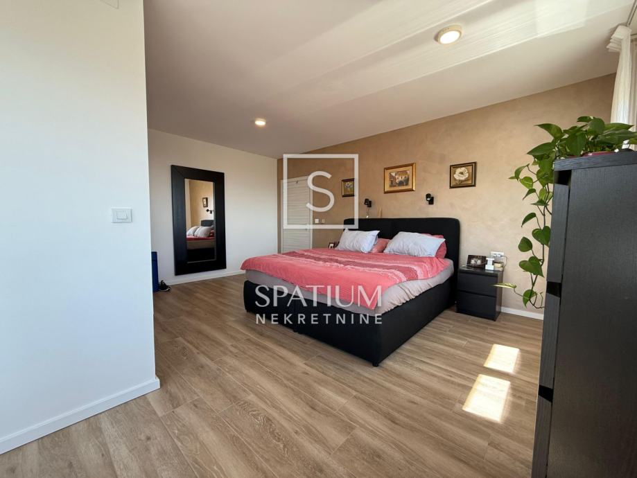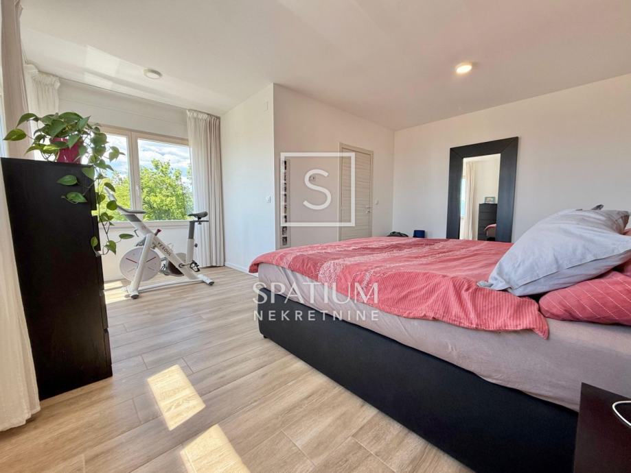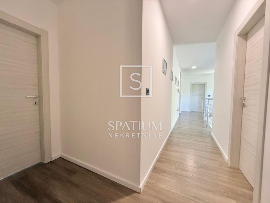 Na katu se nalaze četiri sobe, kupaonica, vešeraj, i dodatna prostorija u funkciji spremišta (može biti treća kupaonica). Sve sobe su južne orijentacije te su ispunjene dnevnom svjetlošću u svako doba dana. "Master" spavaća soba ima vlastitu garderobu, i panoramske prozore s kojih se pruža pogled na more i učku. Iz dvije istočne sobe izlazi se na prostrani balkon s pogledom na more i zelenilo. Sklopivim stepenicama ide se na visoko potkrovlje iskoristive površine ~45 m2.