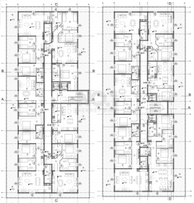 Radi se o dvjema zgradama s ukupno 104 stanova raspoređenih na čak 5 etaža te poslovnim prostorima u prizemlju zgrade. Garažna mjesta i skladišni prostori protežu se na 3 podzemne etaže.