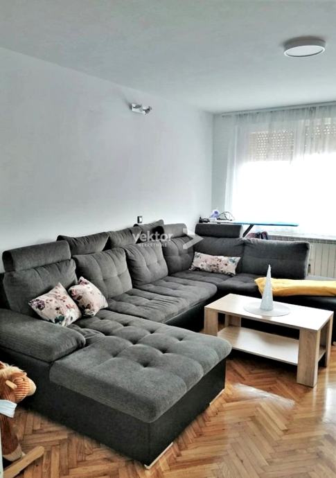 Stan je kompletno adaptiran prije par godina i opremljen novim namještajem. Prostor je funkcionalan, kuhinja s blagovaonom ima izlaz na ugodnu lođu, dnevni boravak dovoljno velik, dvije sobe (jedna opremljena kao dječja s krevetima na kat), odlična kupaonica.