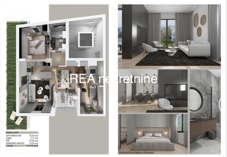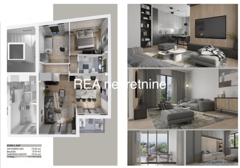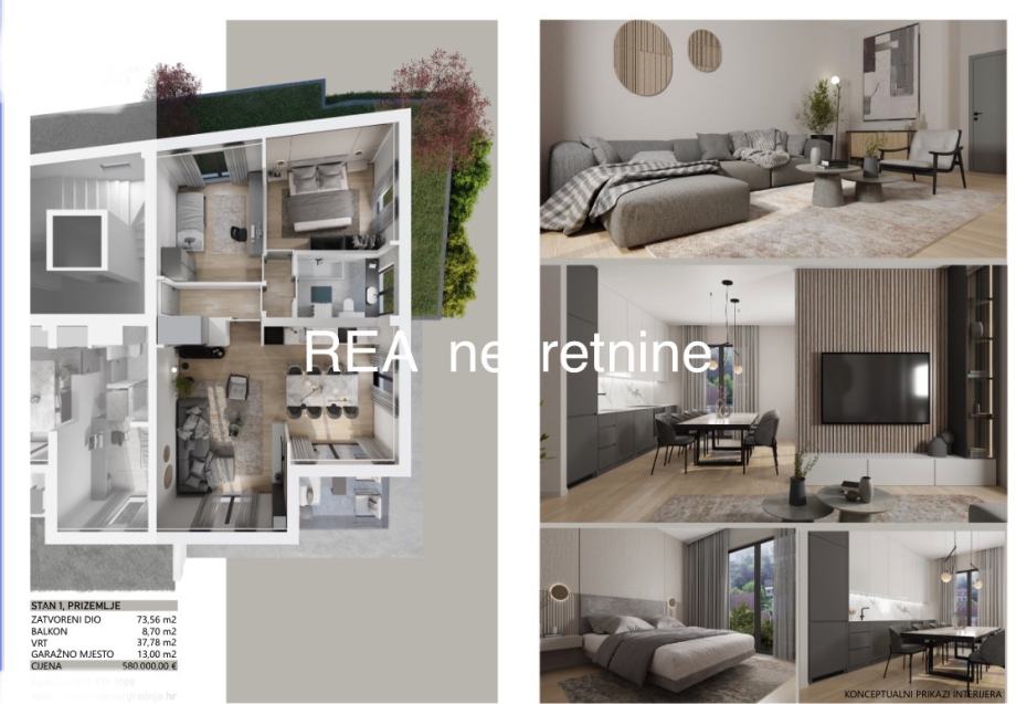 S2 trosoban stan: 92,40 m2 balkon, vrt , GM/ 530.000€
