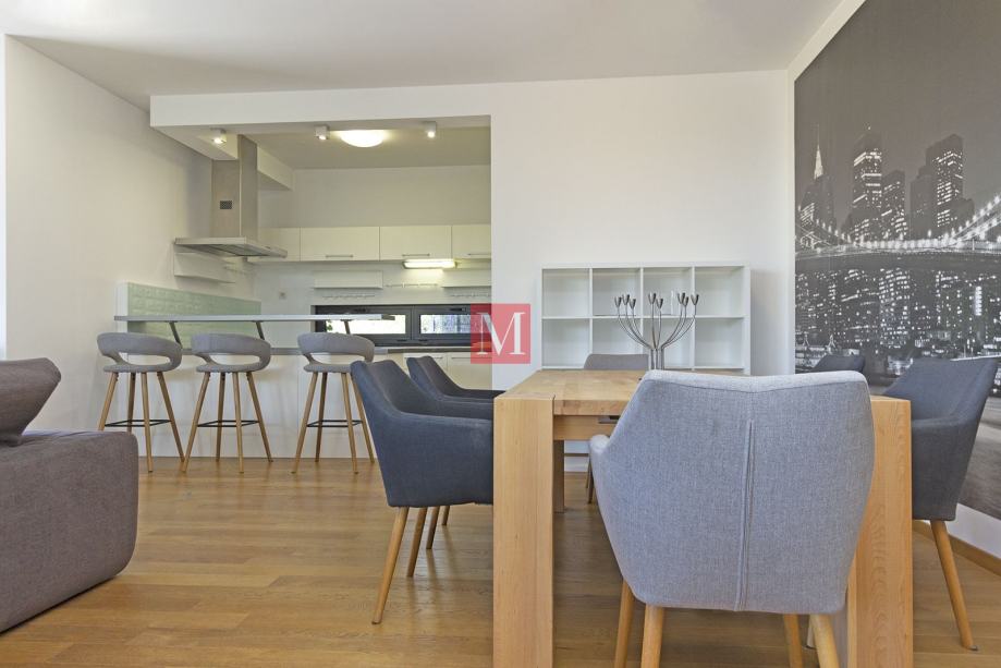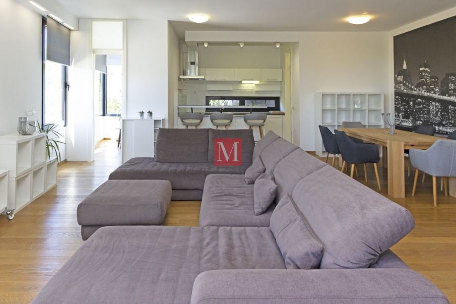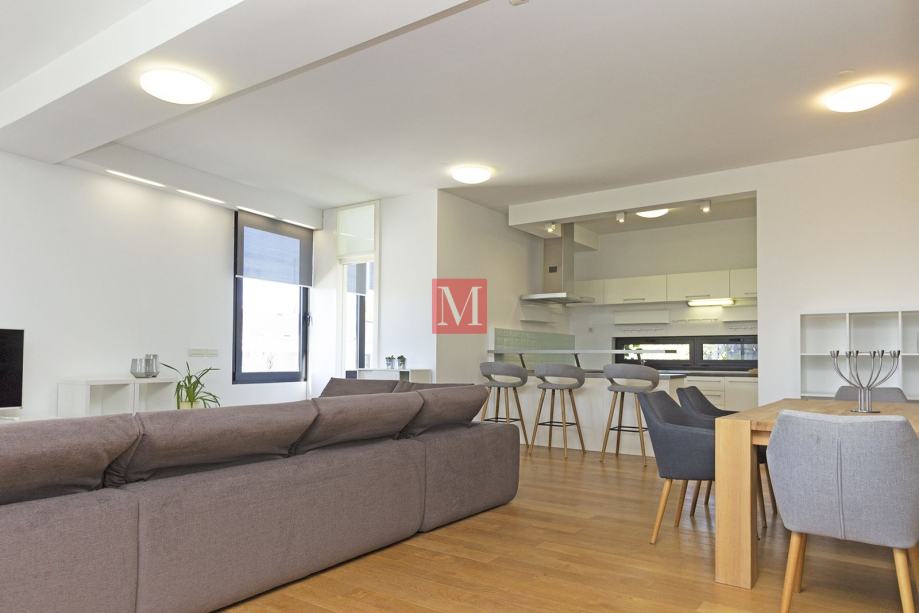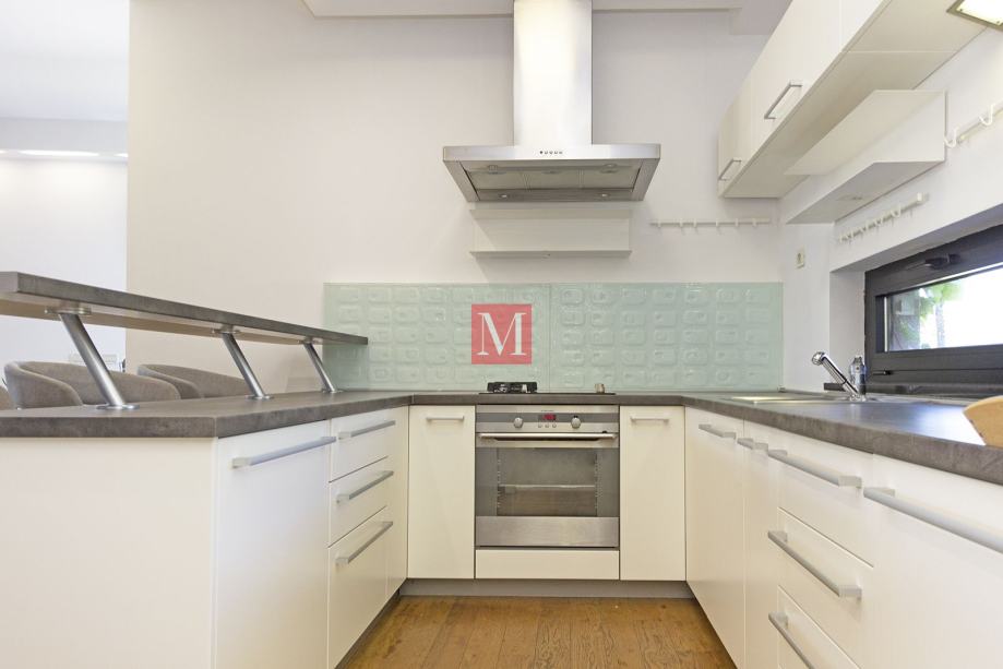 Moderan, svijetao i luksuzno opremljen 3s stan s terasom od 130m2 u prizemlju novije urbane vile, u mirnom i zelenom okruženju, a nadomak strogog centra grada i internacionalnih škola.