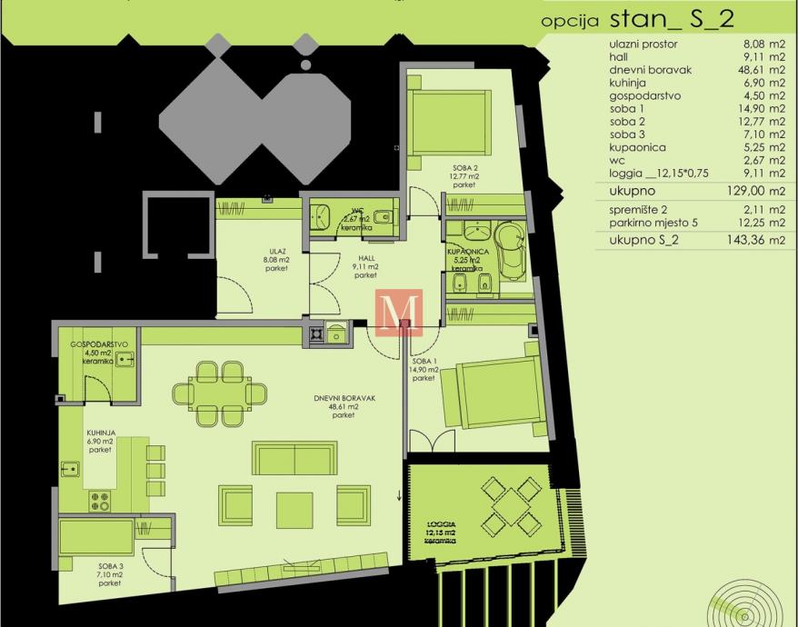Uz stan ide i spremište, kao i 1 parkirno mjesto u dvorištu.