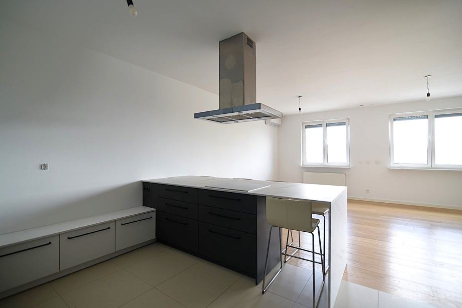 NAMJEŠTAJ I OPREMA: stan je minimalno namješten. Kuhinja je u potpunosti opremljena: indukcijska ploča, pećnica, napa, hladnjak, perilica posuđa; kao i ljetna kuhinja na terasi. U jednoj sobi je ugradbeni ormar, a u drugoj ugradbeni radni stol. U izbi/vešeraju su police. Ostatak prostora je nenamješten.