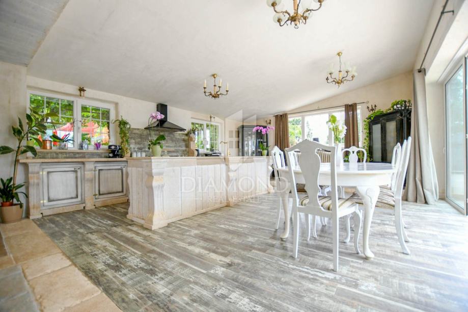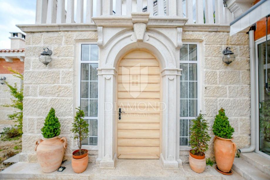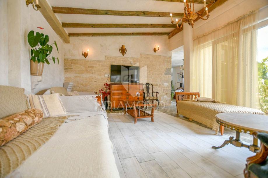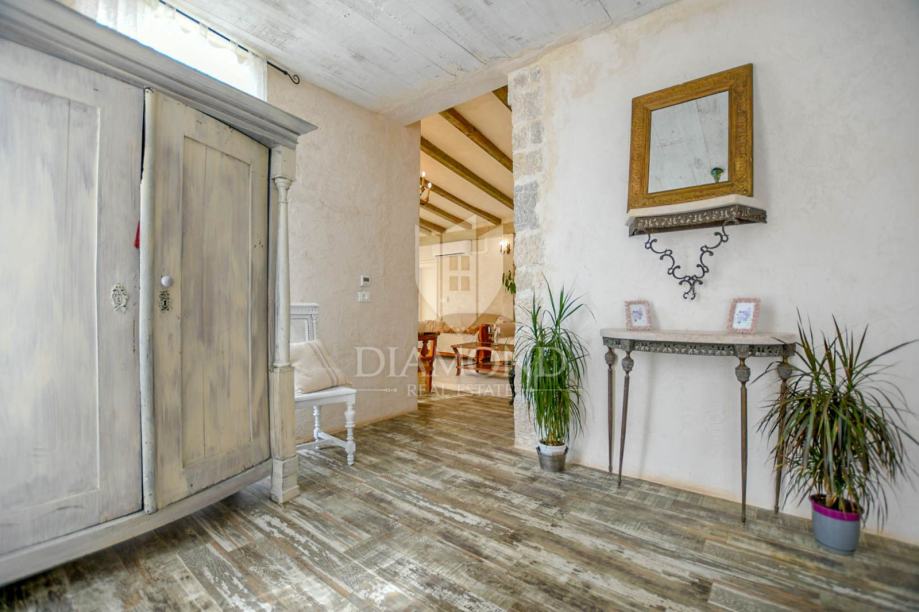 Neobična, šarmantna i jedinstvena Villa, uređena je u vintage stilu, vrlo luksuznog, elegantnog i udobnog dizajna. Prostor je uređen u bezvremenskom stilu s obzirom da su korišteni prirodni materijali, kamen i drvo.
