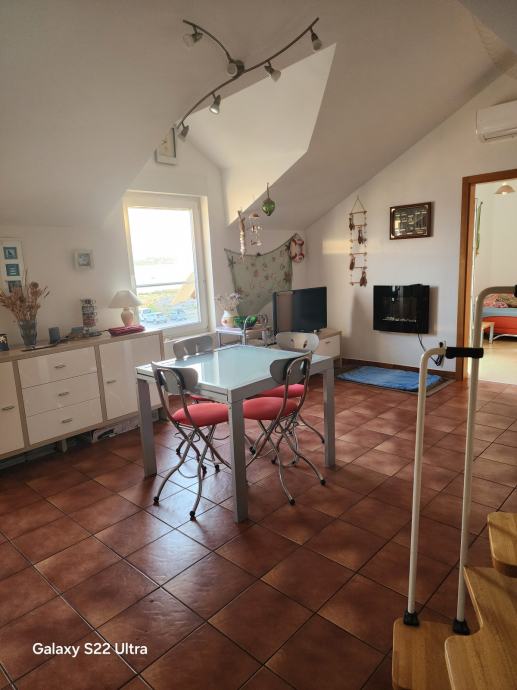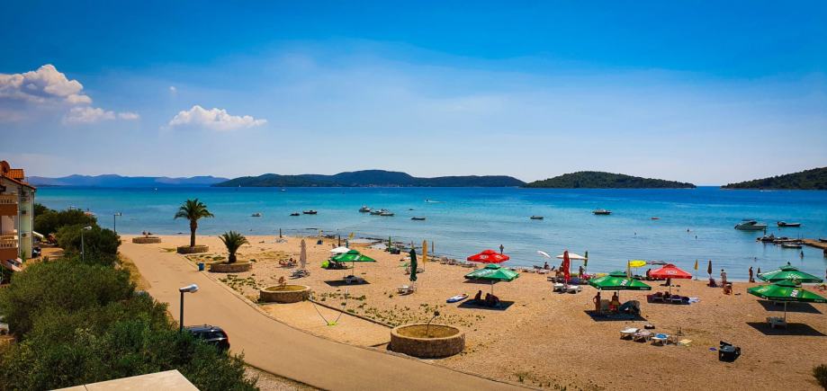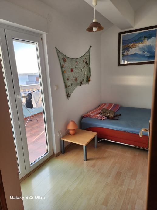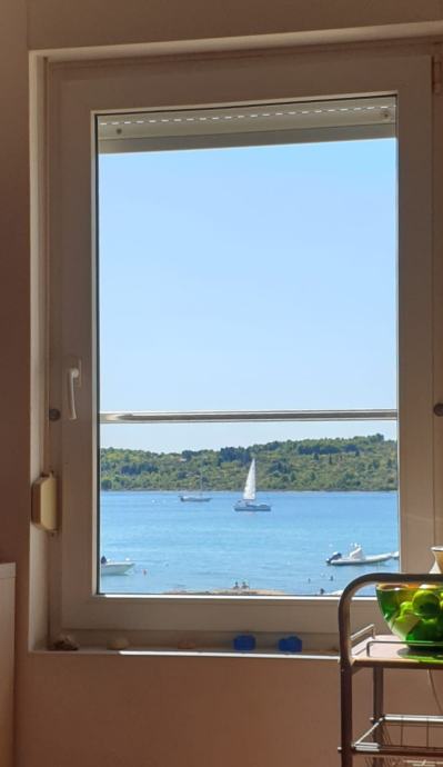 Iz stana se pruža otvoren, panoramski pogled na more i obližnje otoke i to iz kuhinje, dnevnog boravka, spavaće sobe i lođe sto prostoru daje posebnu atmosferu i stalnu povezanost s morem.