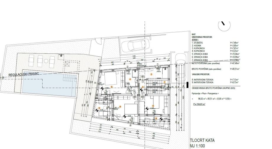 * Parkirna mjesta po 1 stambenoj jedinici min.= 1,5 / 1 Stambena jedinica.