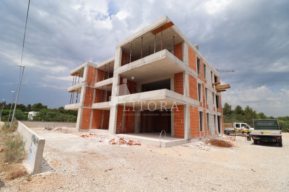 Komforan apartman na 1. katu stambene zgrade, nalazi se svega 300 metara od plaže. Apartman je jugo-istočno orijentiran i ima 85,06 m² ukupne korisne površine, a sastoji se od hodnika, tri spavaće sobe, dvije kupaonice, te prostranog dnevnog boravka s kuhinjom i blagovaonicom koji ima izlaz na veliku terasu površine 19,00 m2. Apartmanu pripada 1 parkirno mjesto. Visokokvalitetna oprema: keramike, sanitarija, stolarije, podno grijanje u kupaonicama, klime, komarnici. Udaljenost do centra je 550 m, do mora / plaže 300m.
