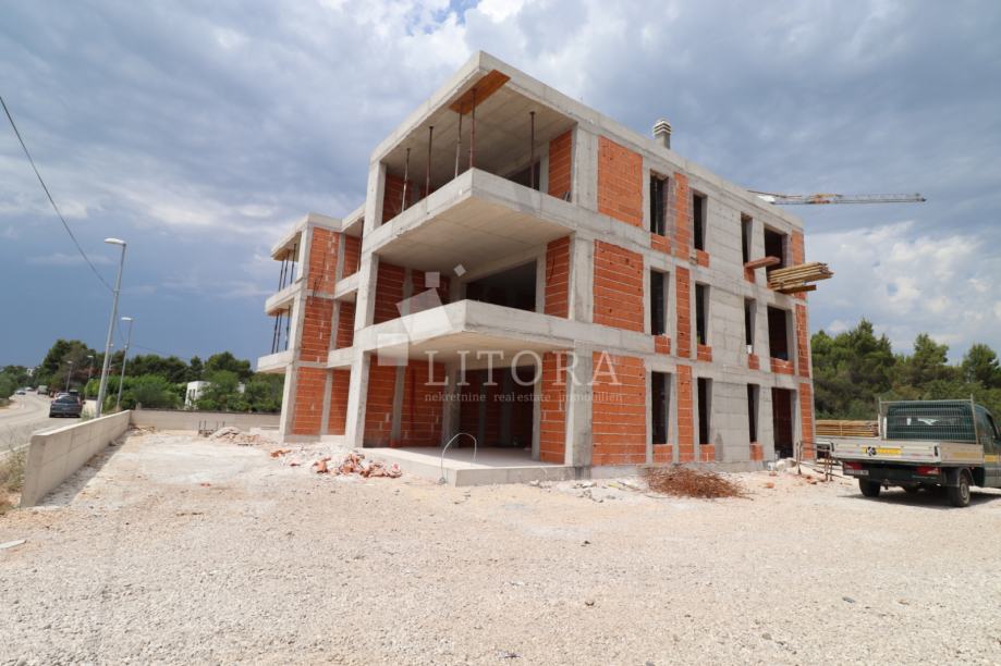Komforan apartman na 2. katu stambene zgrade, nalazi se svega 300 metara od plaže. Apartman je jugo-zapadno orijentiran i ima 81,71 m² ukupne korisne površine, a sastoji se od hodnika, tri spavaće sobe, dvije kupaonice, te prostranog dnevnog boravka s kuhinjom i blagovaonicom koji ima izlaz na veliku terasu površine 17,10 m2. Apartmanu pripadaju 2 parkirna mjesta. Visokokvalitetna oprema: keramike, sanitarija, stolarije, podno grijanje u kupaonicama, klime, komarnici. Udaljenost do centra je 550 m, do mora / plaže 300m.