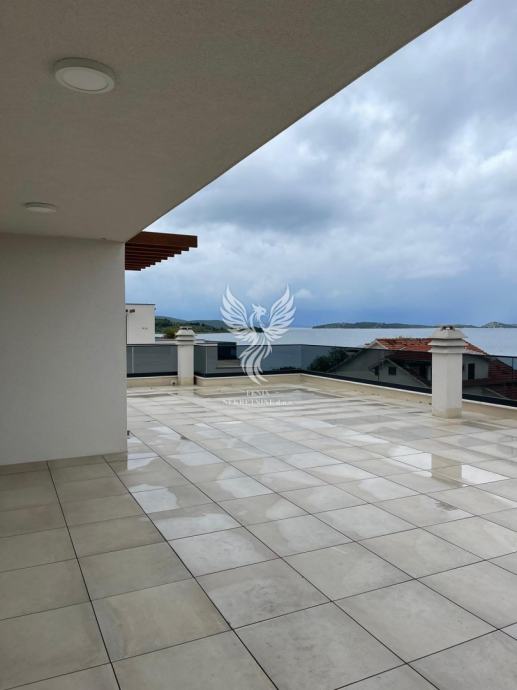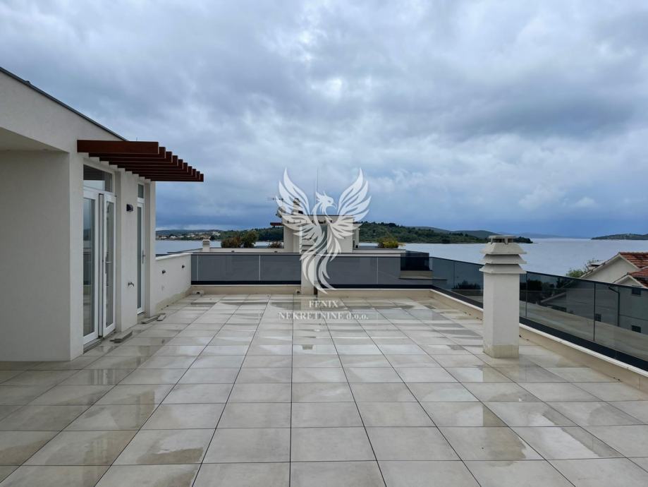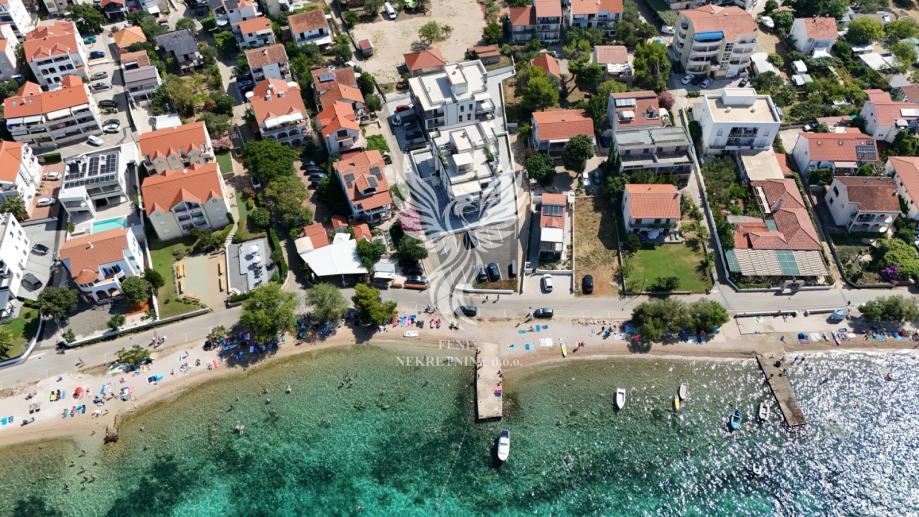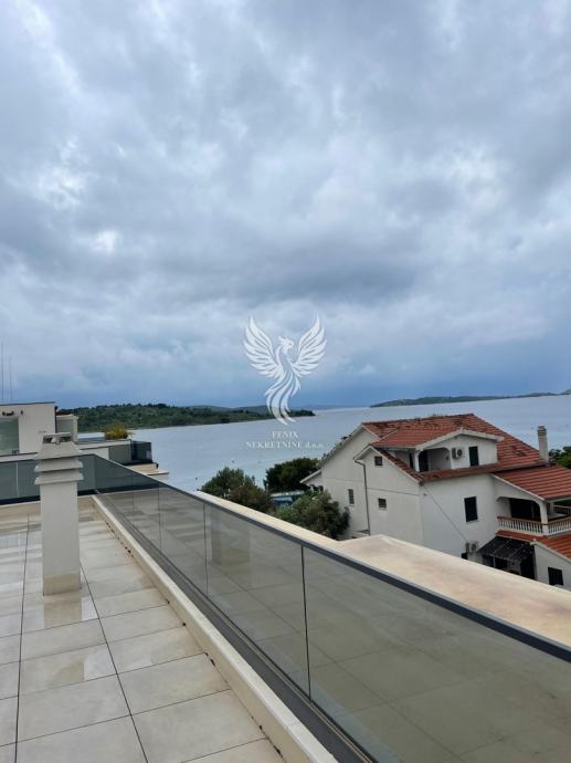 Prodaje se predivan stan, drugi red do mora na Srimi, na svega 20 metara do plaže i s predivnim pogledom na Vodice i mali otočić Prvić, a i u blizini svih važnih sadržaja za život ili bavljenje turizmom. Stan se nalazi na drugom katu, moderne i kvalitetne novogradnje, građene prema zadnjem standardu, a pripada mu i terasa na krovu na kojoj se također nalazi wc, te priključci za struju i vodu. Sam stan se sastoji od kuhinje s dnevnim boravkom i blagovaonicom, triju soba, dviju kupaonica, hodnika, wc-a, prve terase koja se nalazi na drugom katu i stepeništa koje vode prema krovnioj terasi, a pripada mu i jedno parkirno mjesto. Papiri vlasništva i građenja su uredni, a prodavatelj je pravna osoba u sustavu PDV-a, te kupac nije u obvezi plaćanja poreza na promet nekretninama. Stan je useljiv.
