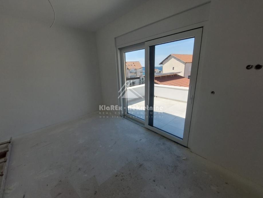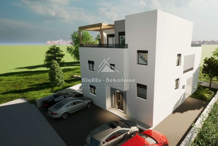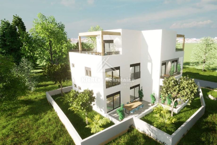U Srimi, na udaljenosti od oko 300 metara od mora se stavlja u prodaju dvojna kuća s dvije stambene jedinice. Svaka stambena jedinica se sastoji od tri etaže na kojima su smještene: tri spavaće sobe, dnevni boravak s pripadajućom kuhinjom i blagovaonicom, kupaonice, a na drugom katu svake stambene jedinice je smještena master spavaća soba s vlastitom kupaonicom i terasom s pogledom na more. Svakoj stambenoj jedinici pripadaju vrt i po dva parkirna mjesta. U ponudi je stambena jedinica: