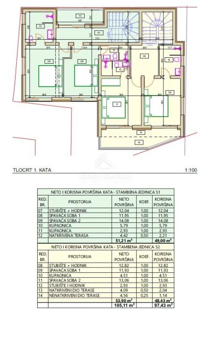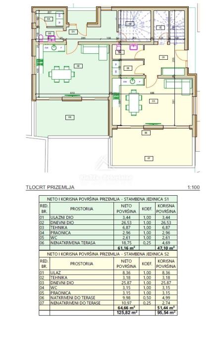 S1- dvojna kuća površine 163.37 m/2 s pripadajućim dvorištem i dva parkirna mjesta. Kuća je u završnoj fazi uređenja.