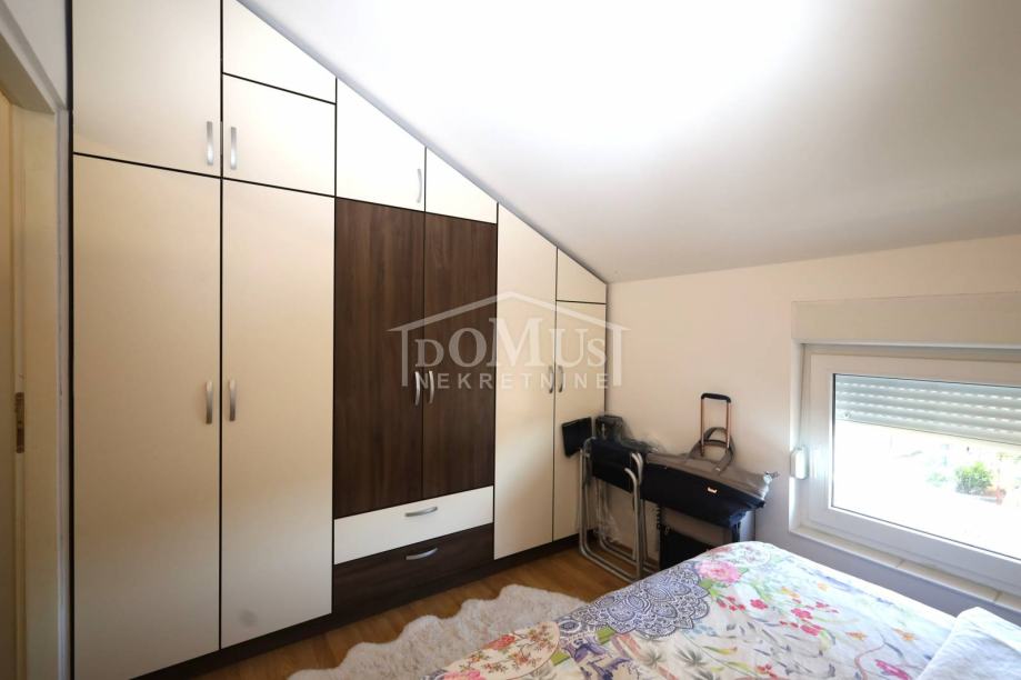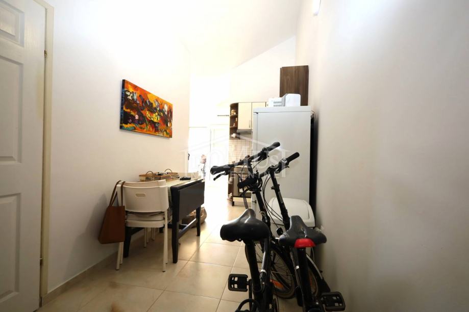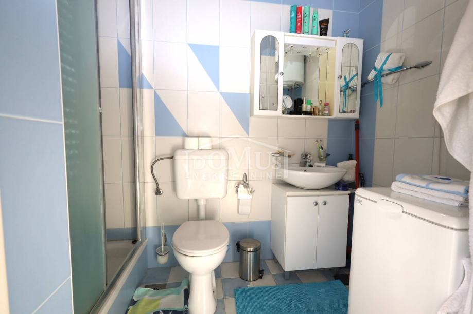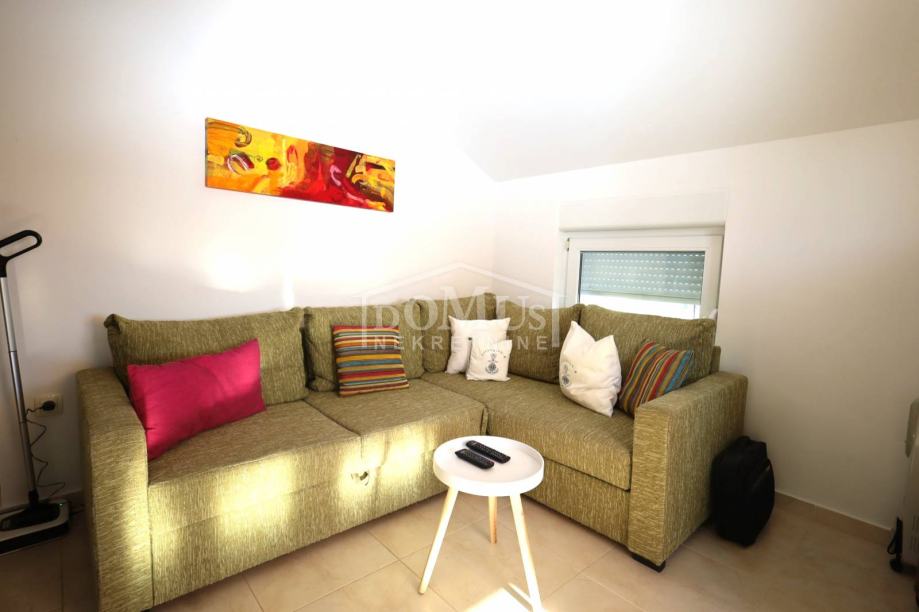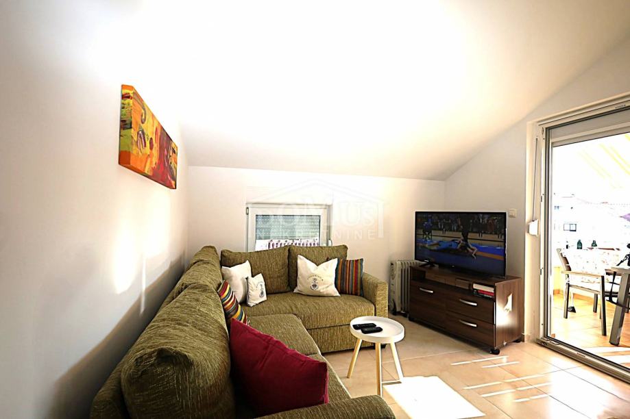 Srima, atraktivna lokacija samo 110m od plaže, jednosoban apartman sa ukupno 40,20 m2 korisne površine. Apartman se nalazi u potkrovlju stambene zgrade koja ima ukupno tri etaže, a sastoji se od hodnika, jedne spavaće sobe, dnevnog boravka s kuhinjom, iz kojeg se izlazi na polu-natkriveni balkon, koji djelomično pruža pogled na more. Apartman je moderno uređen, funkcionalnog rasporeda i kompletno namješten, a namještaj je uključen u cijenu nekretnine. Opremljen je PVC stolarijom, prozorima sa komarnicima i klima uređajem u dnevnom boravku. Apartmanu pripada jedno parkirno mjesto. Do mora i uređene plaže udaljeno 110 m, a do centra udaljeno 700 m.