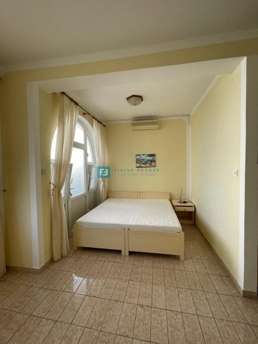 U prizemlju se nalaze tri opremljena studio apartmana, svaki ima ukupnu površinu od 30 m2. Unutarnje stubište vodi na kat ukupne površine 90 m2 gdje se nalazi prostrani apartman koji ima 3 spavaće sobe, kuhinju, ostavu, blagovaonicu, dnevni boravak, veliku kupaonicu s kadom i tušem, WC. U dnevnom boravku se nalazi prekrasan kamin koji dijelom obložen mramorom te šank. Na katu se nalaze tri balkona - jedan veličine 15 m2 te dva manja, svaki od njih ima pogled na more. U visokom potkrovlju nalazi se prostran jednosoban stan ukupne površine 68 m2 koji se sastoji od kuhinje, velikog dnevnog boravka, spavaće sobe i kupaonice, WC-a. U potkrovlju se nalaze dvije velike terase (10 m2 i 12 m2) s pogledom na more.