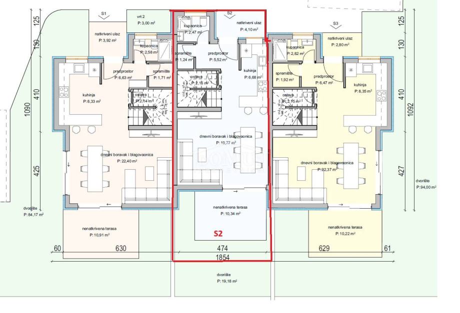 Srima, novogradnja, atraktivna lokacija – prekrasna obiteljska kuća moderne arhitekture i funkcionalnog rasporeda. Kuća S2 je dio trojnog objekta, na dvije etaže (prizemlje + 1. kat), s ukupnom korisnom površinom od 90,77 m², vrtom površine 19,18 m² te jednim parkirnim mjestom.