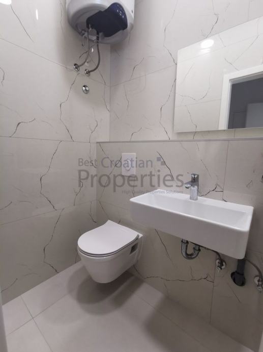 Sastoji se od tri wc-a, hodnika, garderobe, ureda, terase, dvorišta, te mu pripadaju dva parkirna mjesta ispred zgrade.