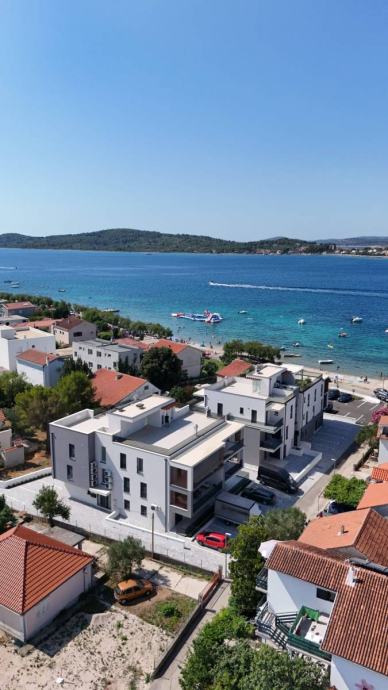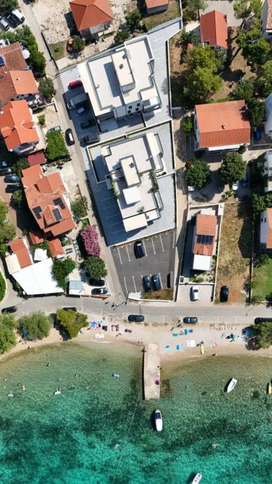 Prodaje se predivan stan, prvi red do mora na Srimi, a i u blizini svih važnih sadržaja za život ili bavljenje turizmom. Stan se nalazi na drugom katu, moderne i kvalitetne novogradnje, građene prema zadnjem standardu, a pripadaju mu i terase na krovu. Sam stan se sastoji od kuhinje s dnevnim boravkom i blagovaonicom, triju soba, dviju kupaonica, hodnika, wc-a, hodnika i stepeništa koje vode prema krovnim terasama, a pripada mu i jedno parkirno mjesto uz mogućnost kupnje dodatnog mjesta. Papiri vlasništva i građenja su uredni, a prodavatelj je pravna osoba u sustavu PDV-a, te kupac nije u obvezi plaćanja poreza na promet nekretninama.