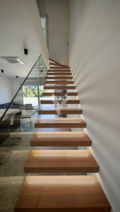 Prodaje se predivan dvoetažni stan na Srimi, prvi red do mora, u blizini svih važnih sadržaja za život. Stan se sastoji od ulaznog prostora, kuhinje s blagovaonicom i dnevnog boravka, kupaonice i natkrivene i nenatkrivene terase na prvoj etaži, te hodnika, kupaonice i triju spavaćih soba na drugoj etaži. Stanu pripada dio dvorišta do plaže kao i jedno vanjsko parkirno mjesto u dvorištu zgrade, sve uračunato u cijenu. Zgrada se odlikuje visokom kvalitetom i građena je prema zadnjim standardima. Stan je kompletno opremljen namještajem.