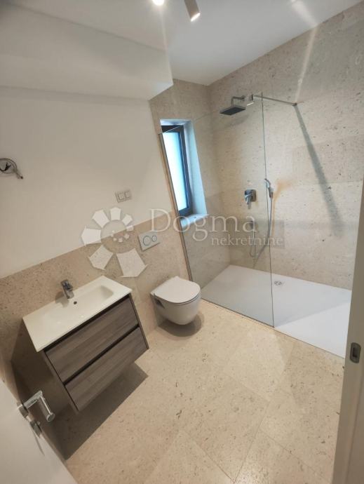 Prva etaža dočekuje vas prostranim hodnikom koji vodi do svjetlih i udobnih spavaćih soba, svaka s vlastitom en suite kupaonicom za dodatnu privatnost i udobnost. Zasebni WC dodaje praktičnost ovom prostoru. Prostrana kuhinja s blagovaonicom idealna je za uživanje u obrocima s obitelji i prijateljima, dok natkrivena terasa pruža savršen kutak za opuštanje uz pogled na beskrajno plavetnilo mora.