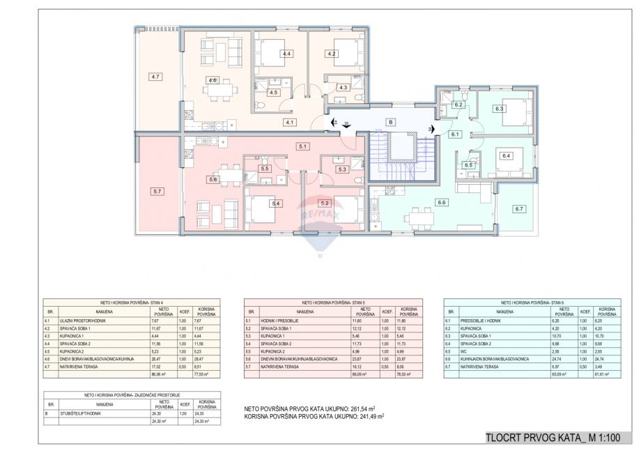 Zgrada ima 3 etaže : prizemlje + 1. kat + 2. kat te krovnu terasu. U zgradi je predviđena instalacija dizala, čime se osigurava dodatna razina udobnosti i pristupačnosti.