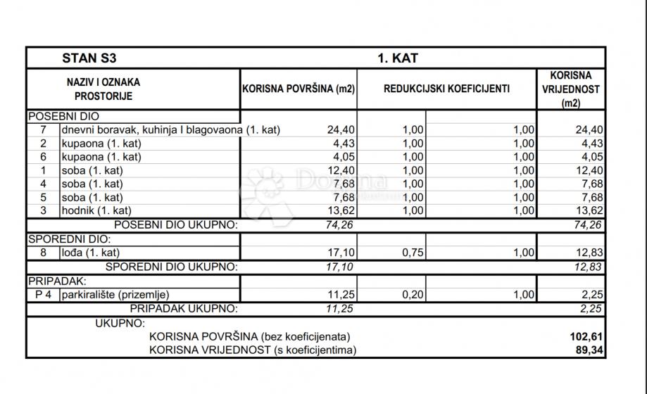Prodaje se trosoban stan S3 na 1 katu novogradnje korisne površine 89.34 m2.