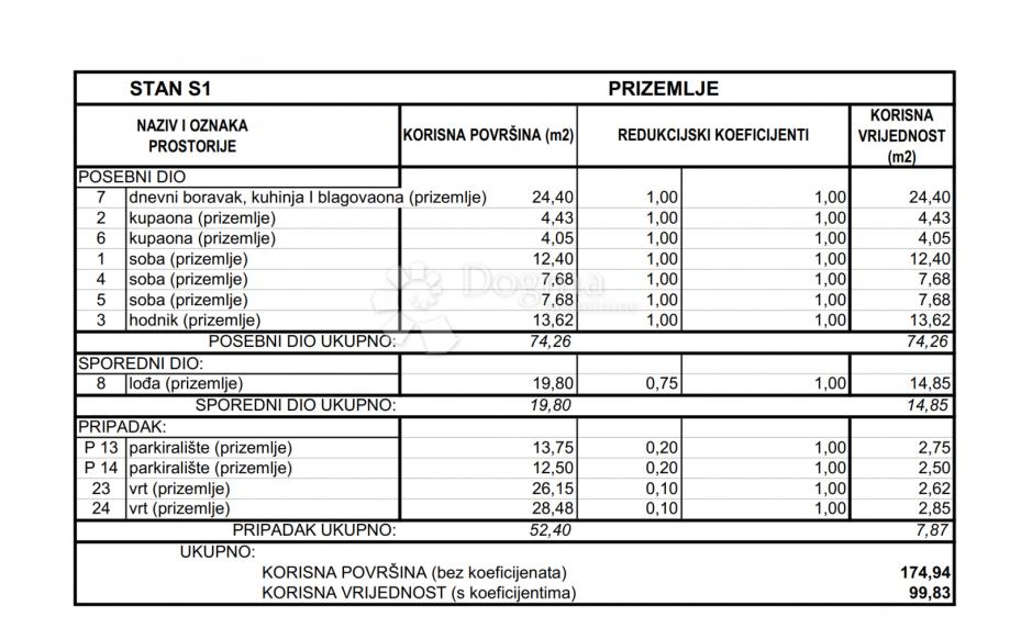 Prodaje se trosobni stan S1 u prizemlju novogradnje korisne površine 99.83 m2.