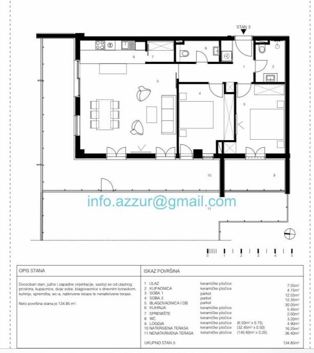 Dvosobni – 11 stanova (od 61,95m2 do 134,85m2)