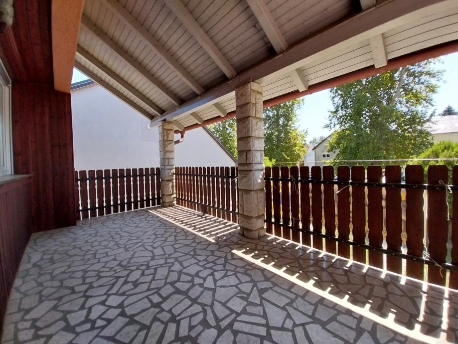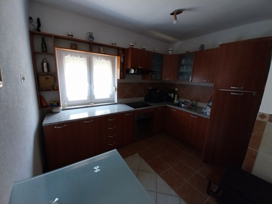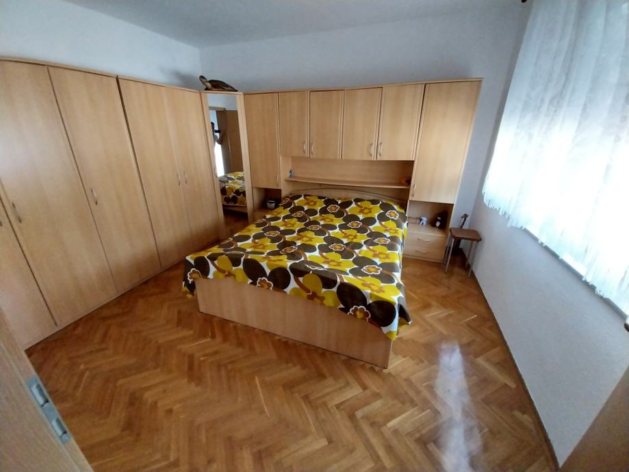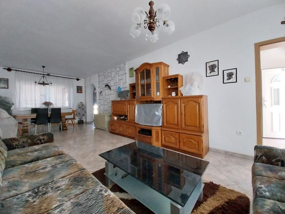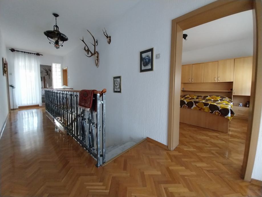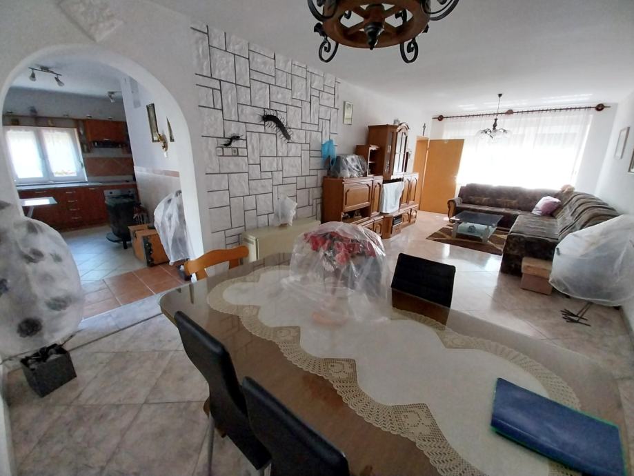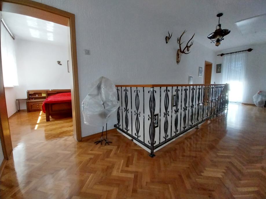 Prodajemo stambenu kuću s dvorišnim stanom na adresi ulica Leopolda B. Mandića 208A. Kuća je građena početkom 80-ih godina, a kompletno je adaptirana prije 10-ak godina. Adaptacija je obuhvatila: stavljanje vanjske izolacije s dvije strane kuće, postavljanje nove vanjske PVC stolarije, izmjena cijevi i instalacija, postavljanje nove keraminke, brušenje parketa, izolacija krova (podaskano + staklena vuna). Prizemlje kuće se sastoji iz hodnika, jedne spavaće sobe, kupatila, dnevnog boravka i blagovaonice, kuhinje s izlazom na terasu u dvorišnom dijelu. Kat kuće se sastoji iz hodnika, 3 spavaće sobe te kupatila, dok je u potkrovlju jedna prostorija (koja je trenutno jedna ostava) - provedena je struja, stavljena je PVC stolarija (potrebno je samo staviti podne obloge). Također, u dvorišnom dijelu, s posebnim ulazom nalazi se i dvorišni prizemni stan od cca 45 m2 koji se sastoji iz hodnika, jedne sobe, kupatila te kuhinje povezane s blagovaonicom i dnevnim boravkom. Iznad dvorišnog stana je i potkrovlje koje je trenutno neuređeno ali uz minimalna ulaganja ga je moguće preurediti u stambeni prostor (na tavanskom dijelu je provedena struja). Ukupna kvadratura placa je 508 m2 te postoji i kolni ulaz u dvorište. U dvorištu je i pušnica. Grijanje je na peć na kruto gorivo/termo peć. Moguć je priključak na plinsku mrežu.