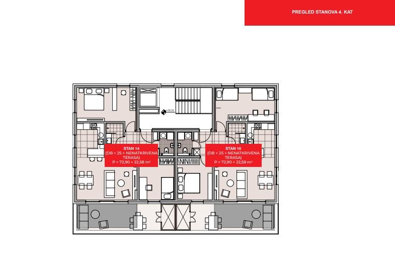 Ukupno 15 stanova (1 i 2 spavaće sobe)