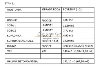 Stan S1 nalazi se u prizemlju te se sastoji od ulaznog prostora, kuhinje s blagovaonicom, dnevnog boravka, dvije spavaće sobe, kupaonice i loggie, a dodatnu vrijednost pruža prostrani vrt koji pripada stanu i idealan je za svakodnevnu upotrebu.