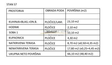 Stan S8 nalazi se drugom katu te se sastoji od ulaznog prostora, kuhinje s blagovaonicom, dnevnog boravka, tri spavaće sobe, kupaonice ,wc i dvije terase ( natkrivena i nenatkrivena ).